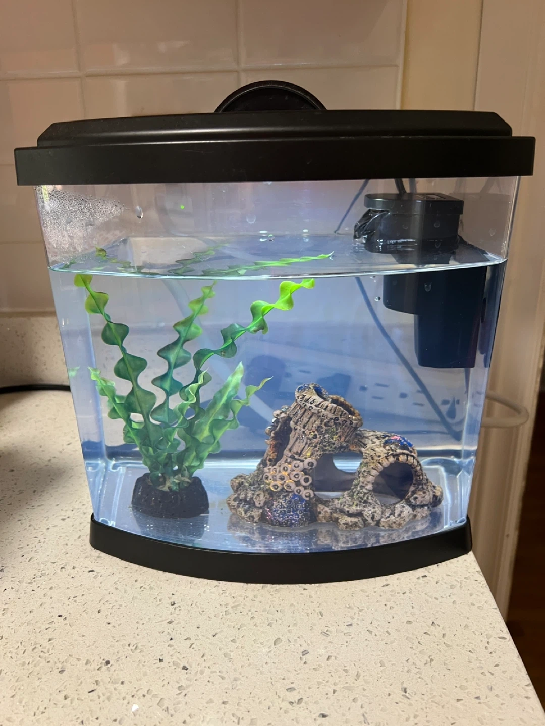 20Selling a plastic fish tank that comes with a water filter and light. I am throwing in three bonus brand new filter cartridges! Perfect for a small fish or a beginner looking to get into the hobby.
