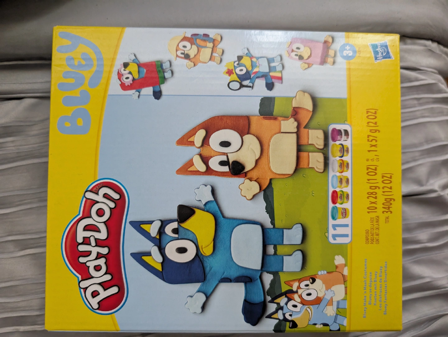 Get creative with this Play-Doh Bluey Make 'n Mash Costumes set! It includes 11 cans of Play-Doh and lots of molds to create Bluey and her friends. Perfect for kids aged 3 and up