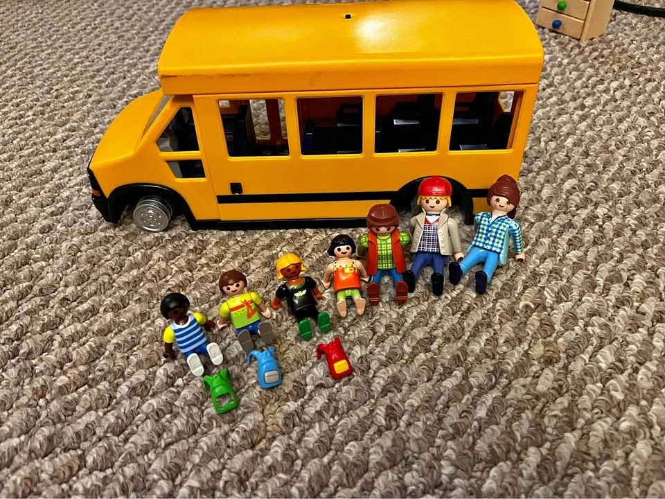 10Lights and sounds work. Has “students” and driver. Missing the rubber off the tires. $15