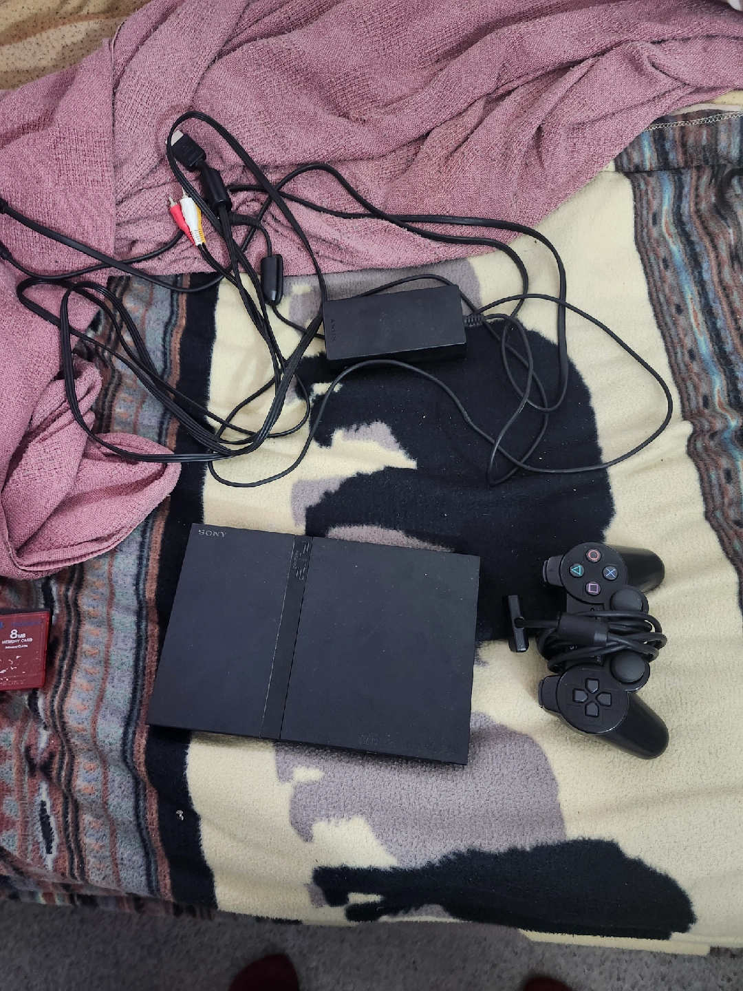 21Selling a PlayStation 2 bundle! Includes the console, controller, power adapter, AV cables, and two 8MB memory cards. Also comes with two games: Need for Speed Underground and Ford Racing 3!