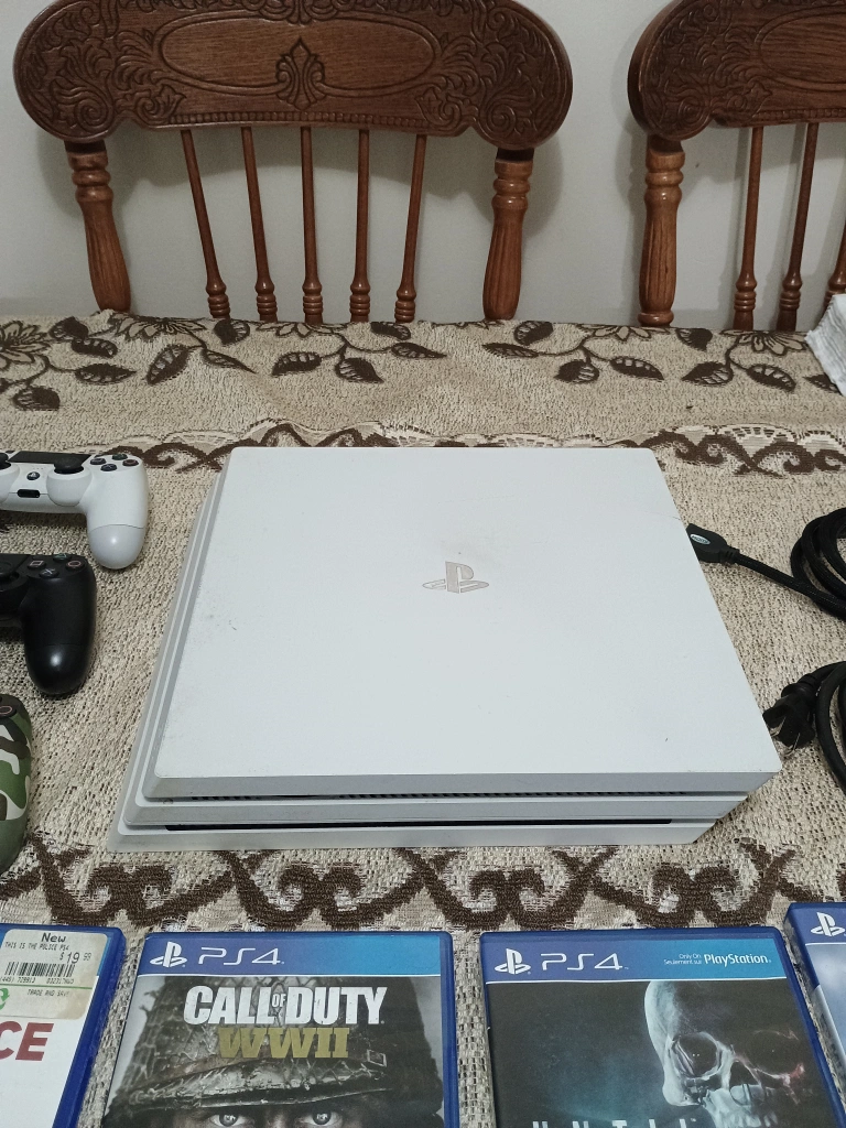 PlayStation 4 Pro 1TB with 1 controller in excellent condition includes all the wires 1 original dual stock controller factory reset, no games included I have 2 more controllers as well and 11 games ( if you want all the 3 controllers and 11 games and the PlayStation 4 Pro 1TB console it will be 450 only ) contact via karrot Ellesmere and Morningside