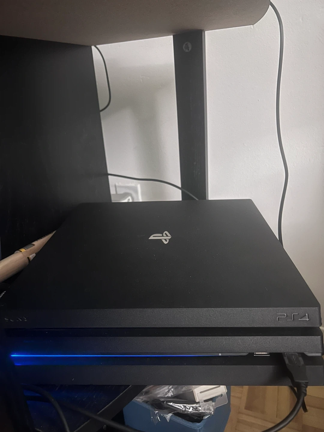 Selling a PlayStation 4 Pro 1TB console with a controller. It's in good condition and ready for a new home! Perfect for gaming enthusiasts. Includes one console and DualShock controller. The charging cable is a little broken at the edge but still works. A new one can be purchased from amazon etc. and not that expensive. Works perfect even for online games like Call Of Duty Warzone, Fortnite etc.