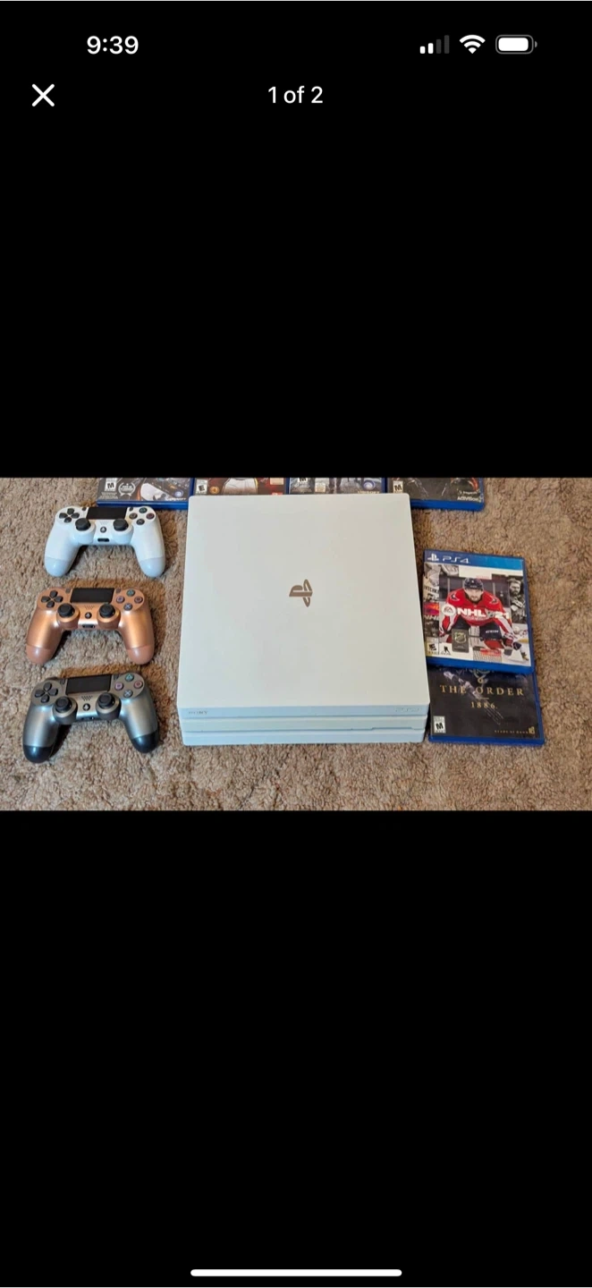 Selling a PlayStation 4 Pro in white! It comes with three controllers and a few games. Ready for a new home and lots of gaming fun