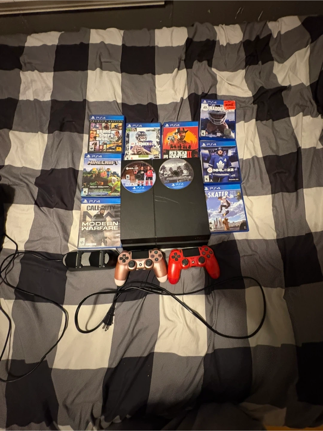 Selling a used PlayStation 4. It comes with a few games and controllers. Great for some gaming fun!
