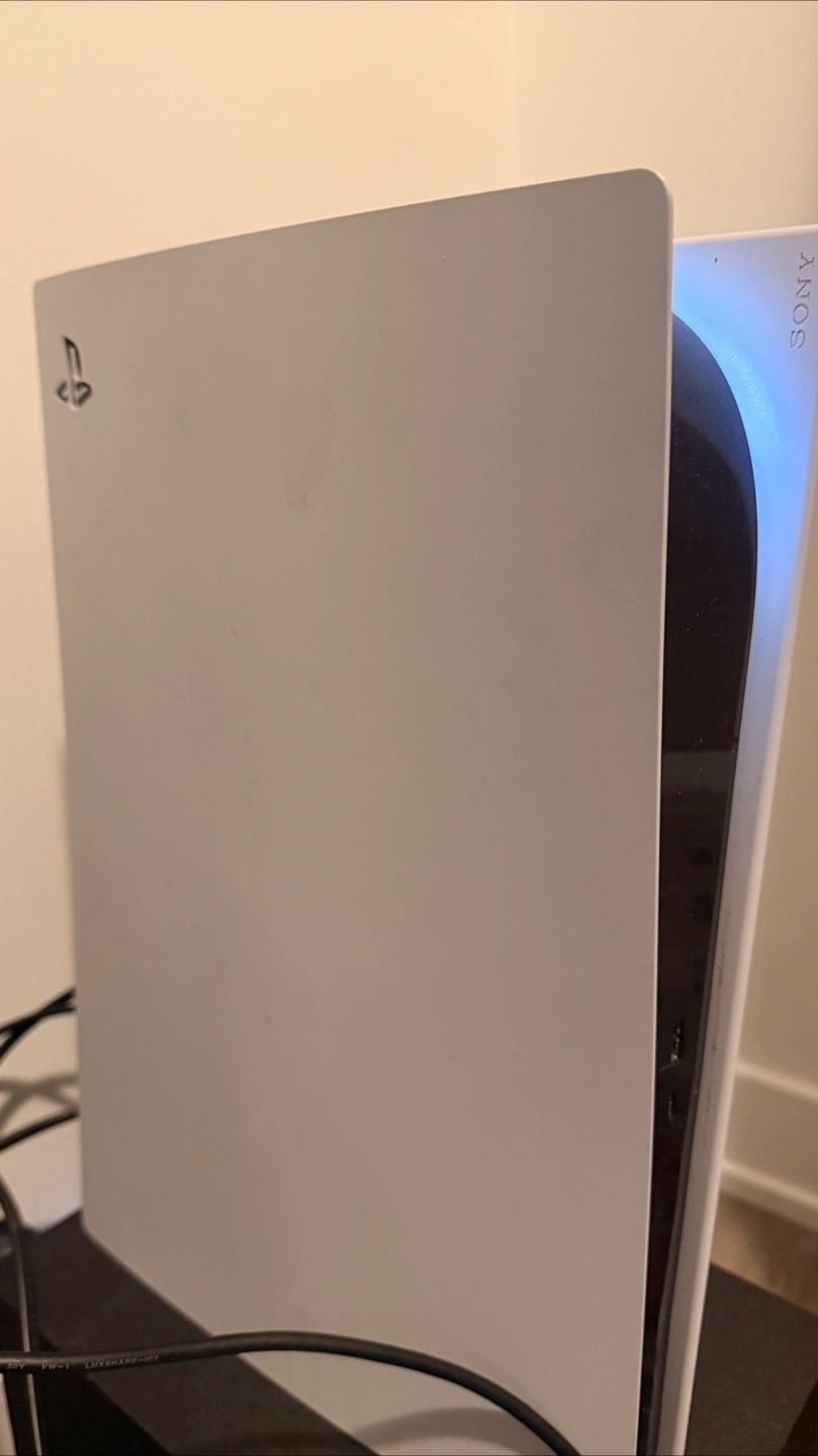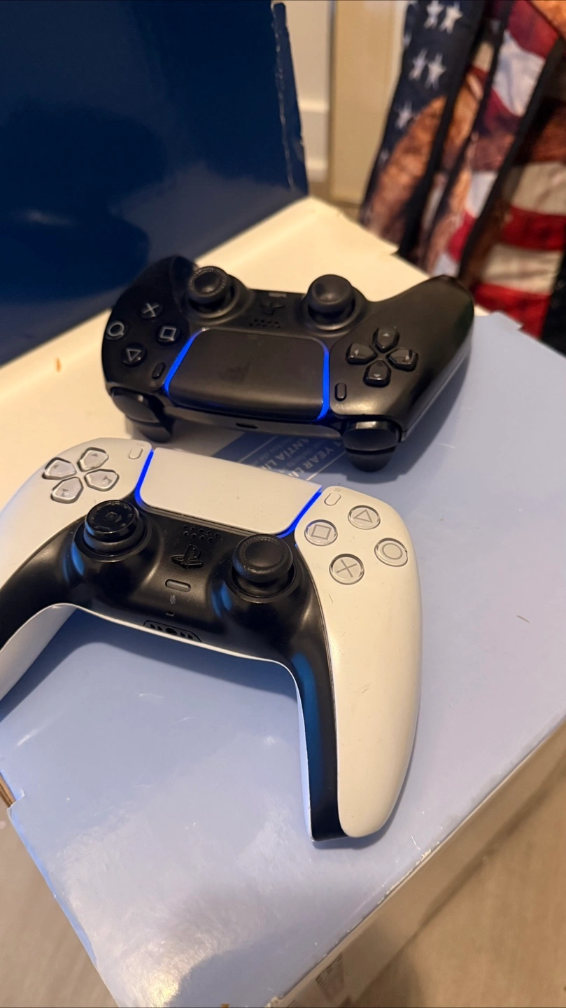 Selling a PlayStation 5 console along with two controllers! One is the standard white DualSense controller, and the other is a black third-party controller. Both are in great shape and ready for some gaming!