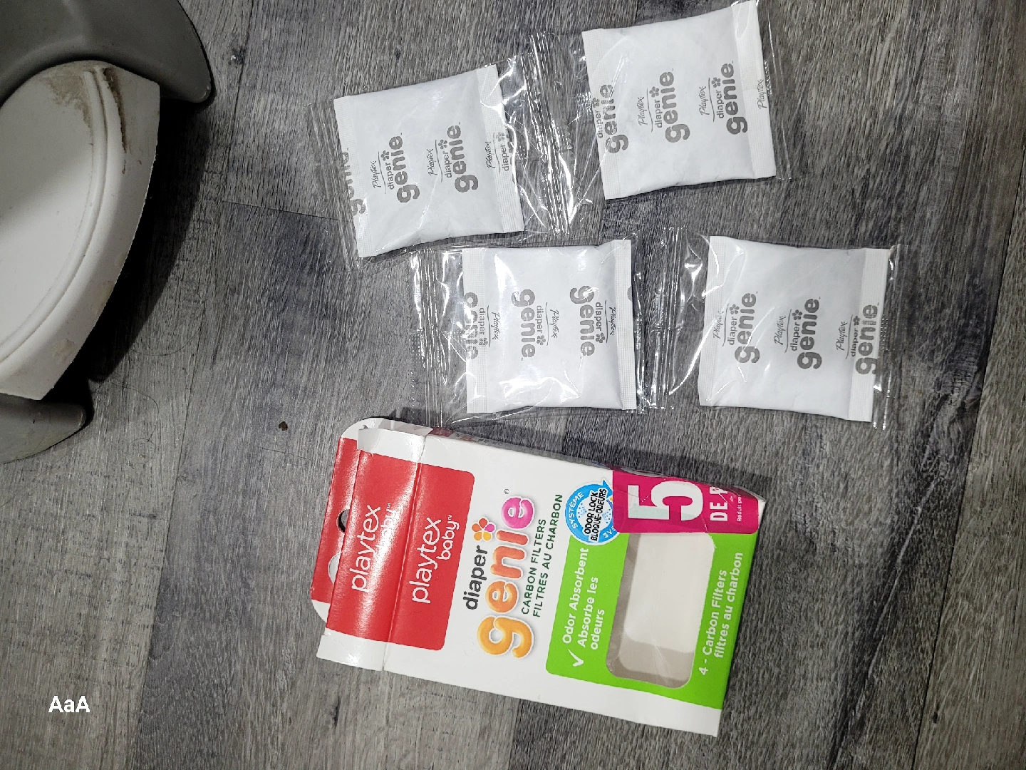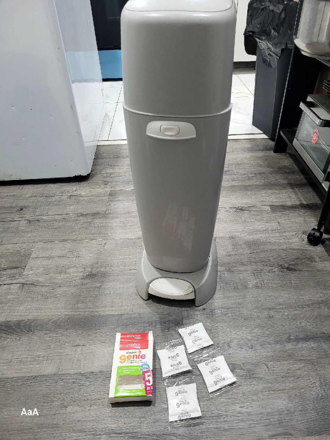 Selling a Playtex Diaper Genie Complete Pail. It's in good used condition and ready to help with diaper disposal! Also included are 4 carbon filters to help absorb odours. Perfect for keeping the nursery fresh. Will be washed thoroughly for you before pick up.