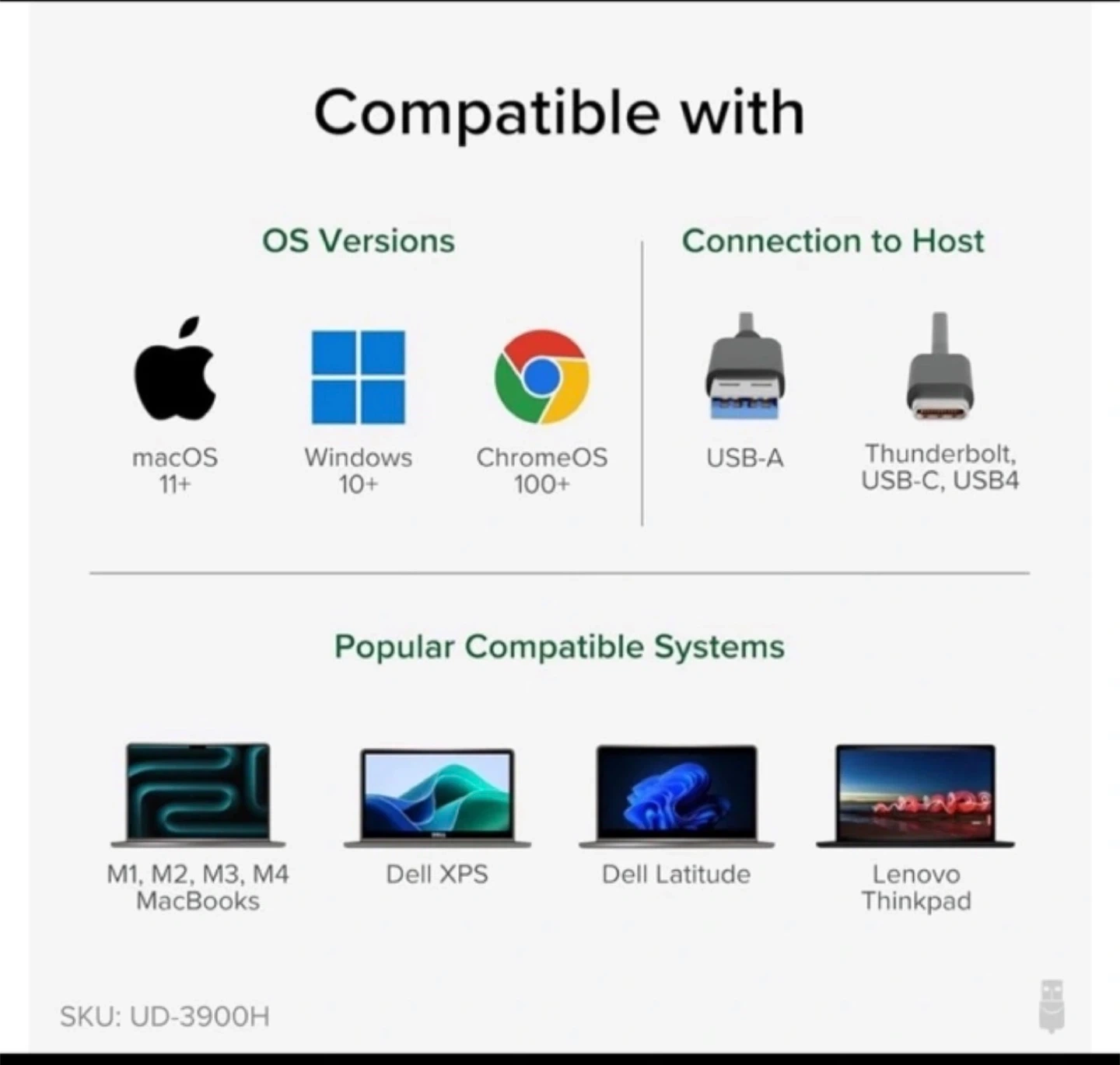 277Selling a Plugable USB 3.0 Dual Monitor Horizontal Docking Station! It works with modern and legacy laptops. Compatible with macOS 11+, Windows 10+, and ChromeOS 100+. It supports USB-A, Thunderbolt, USB-C, and USB4 connections to host Amazon sells it for $100 plus tax