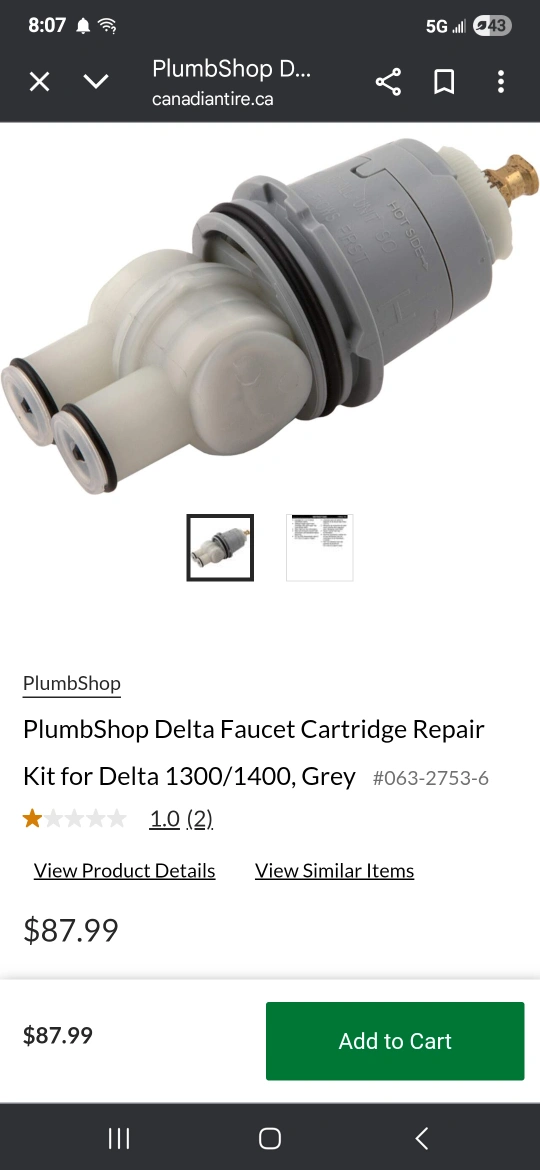 60Selling a PlumbShop Delta Faucet Cartridge Repair Kit for Delta 1300/1400 in grey. Originally bought for $87.99.