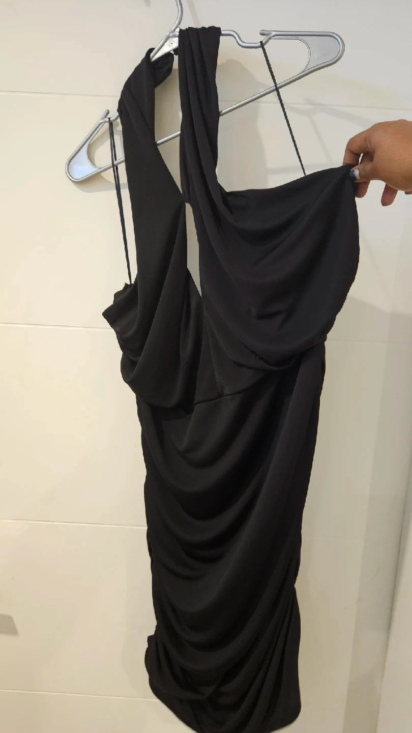 87Selling a stylish black halter mini dress! It's in great condition and perfect for a night out or a special occasion. The dress features a unique halter neckline and a flattering ruched design. It's made from a comfortable material that drapes beautifully. Feel free to reach out if you're interested!