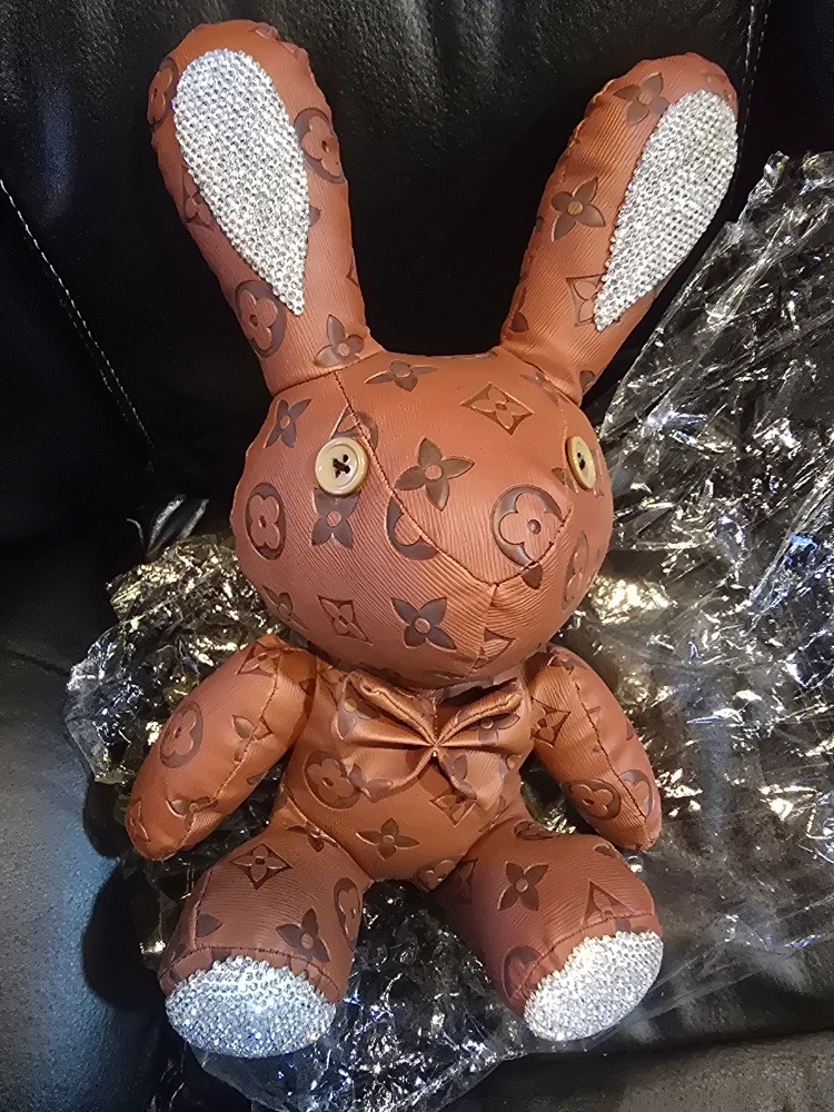 137Brown plush rabbit toy with a bow tie. Embellished with rhinestones. New, never been used.