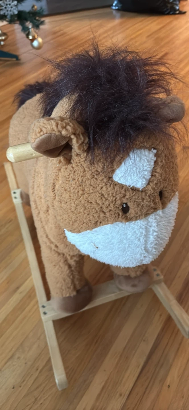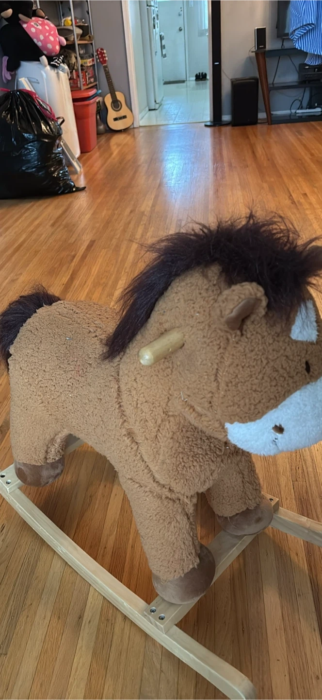 10A cute plush rocking horse for your little one! It's in good condition and ready for a new home. Perfect for hours of fun and imaginative play