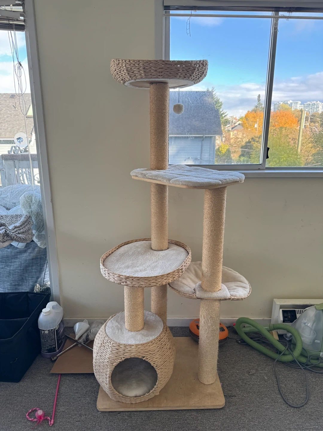 This cat tree goes on retail for $320+ and it’s well taken care of. My cat only uses the bottom scratcher. Dimensions are 58 x 48 x 151.8 cm Payment: Cash accepted
