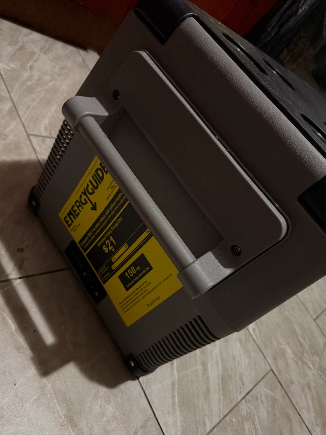 Selling a portable car refrigerator/freezer. It features a black and gray design with an Energy Guide sticker. It’s perfect for keeping your items cool on the go!