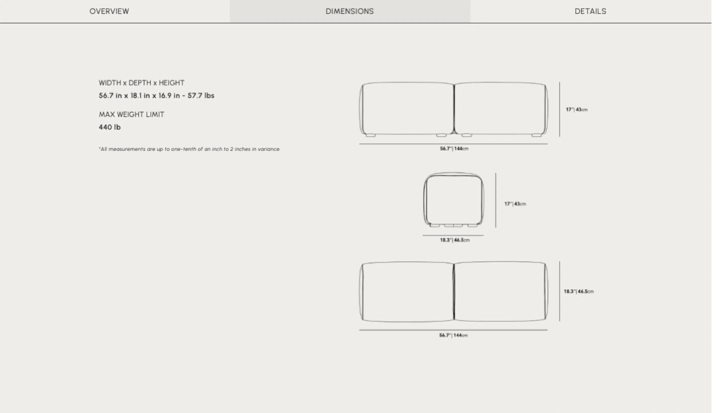 Dimensions: 56.7" W x 18.1" D x 16.9" H