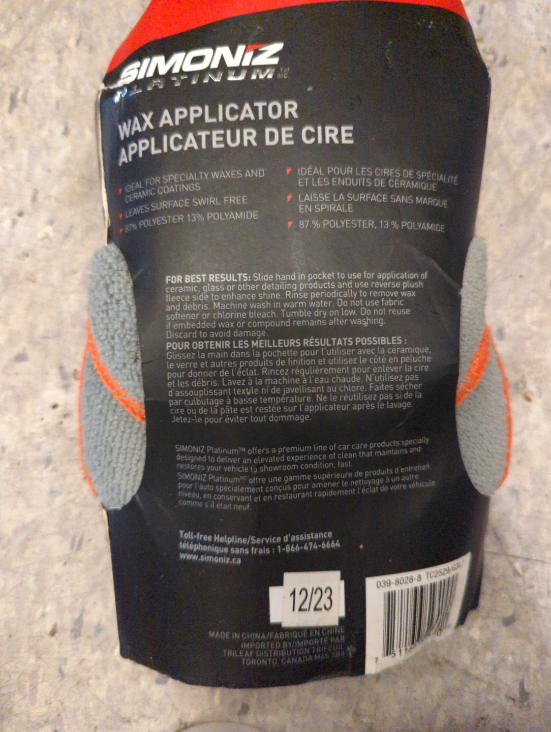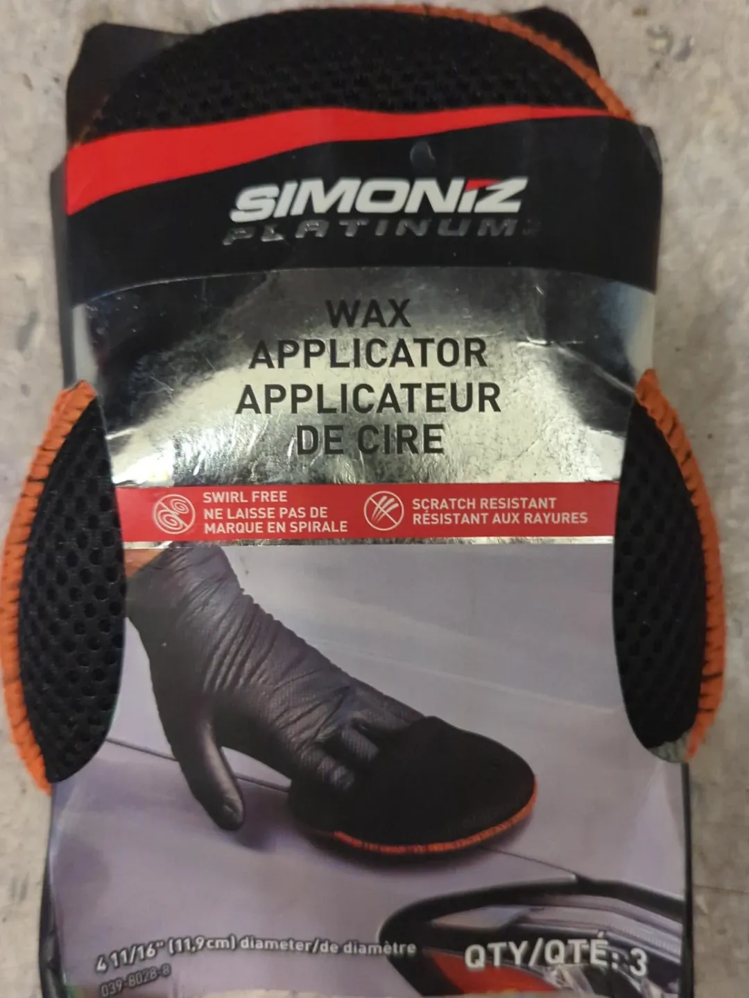 This Simoniz Platinum wax applicator is designed for specialty waxes and ceramic coatings. It features a swirl-free and scratch-resistant surface. Made with 87% polyester and 13% polyamide.