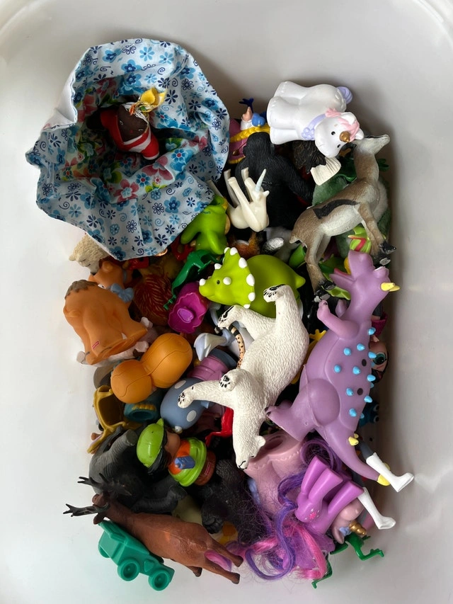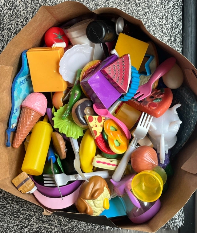 Play food, toy figurines + other toys