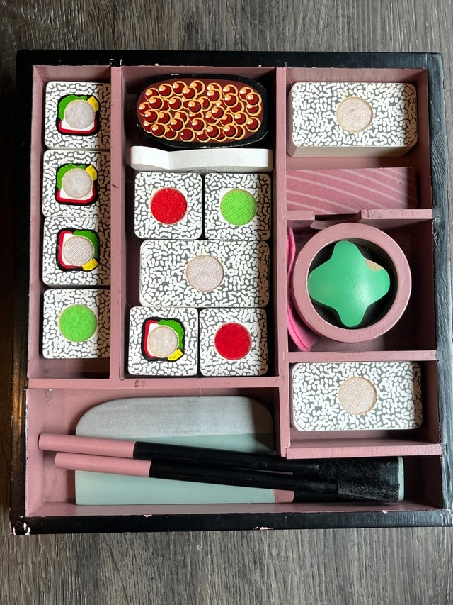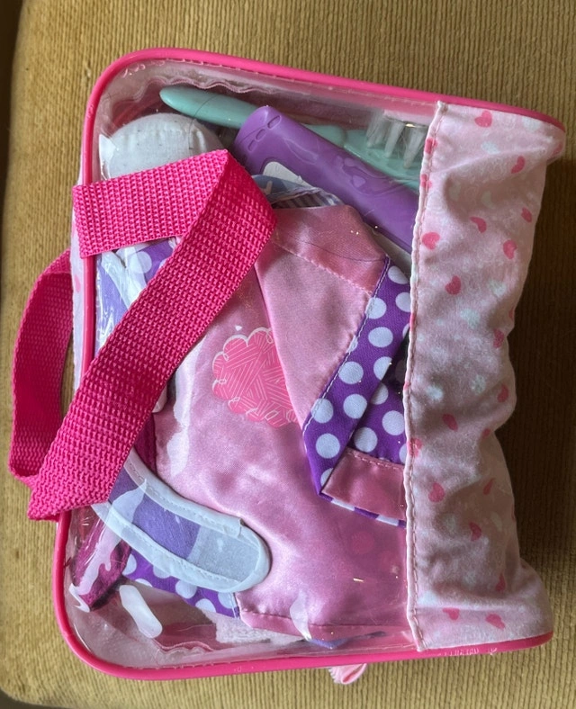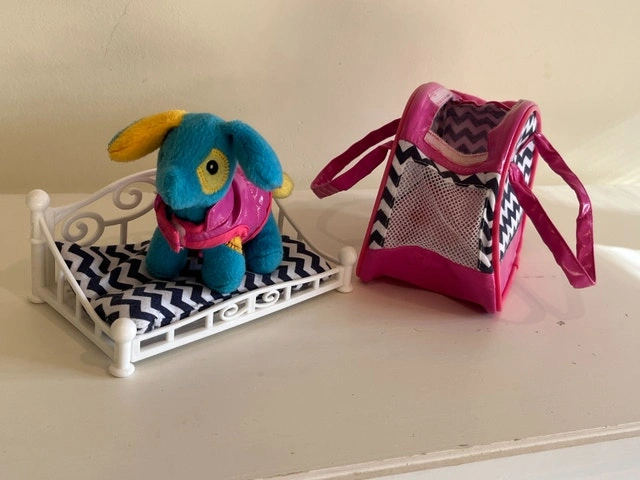 See photos: Play food + kitchen accessories (plates, pan, apron, etc) = $10. Fake sushi bento box = $5. Doll clothes & accessories = $2. Figurines (animals, my Little pony, etc) =$5. Toy Pet bed / travel bag = $5. Toy cars = $5. Animal Jam dance stage + 2 figurines (not in photo). See other ads for additional toys.