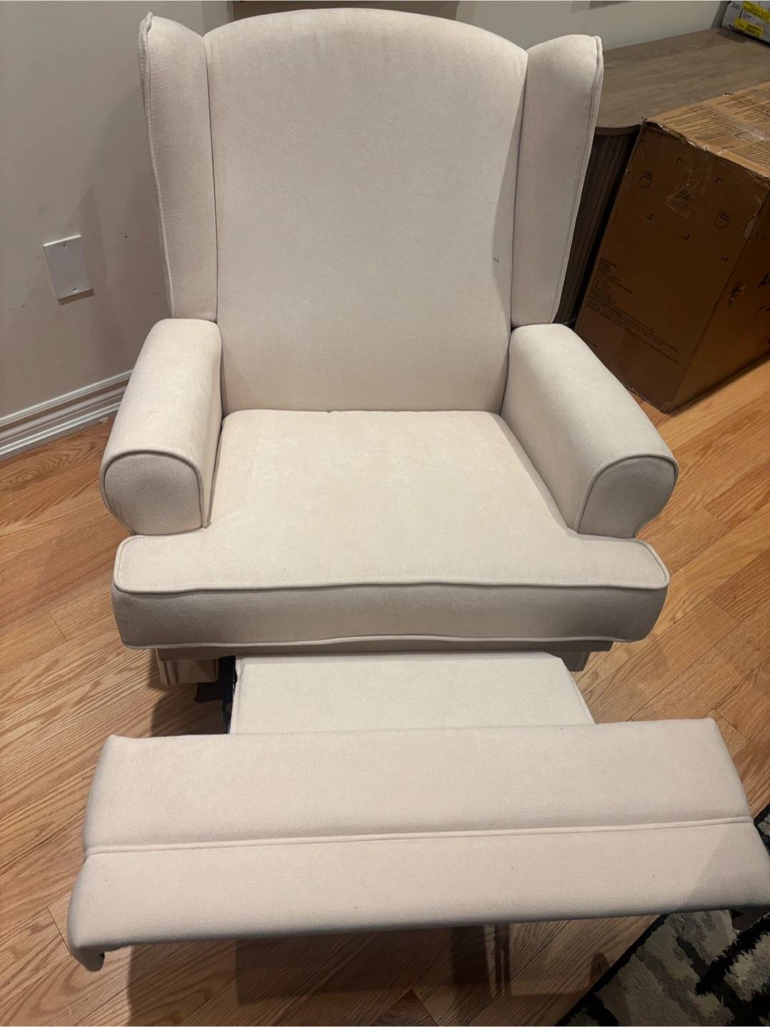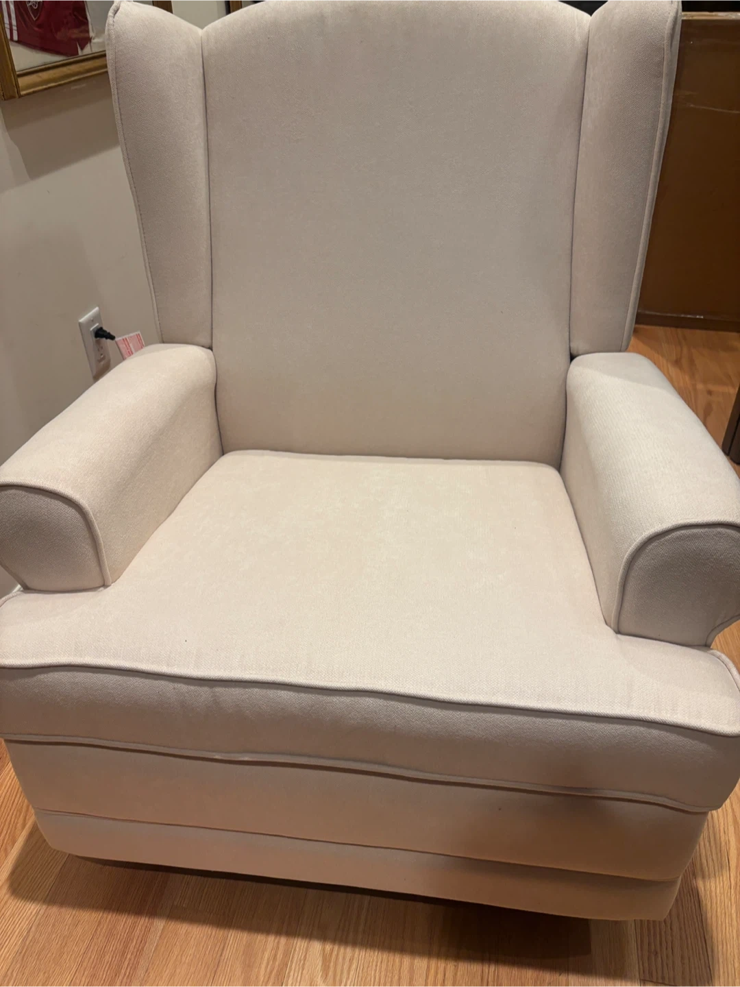 This Storkcraft Rocker glider features a swivel,and reclining function, perfect for relaxing. It's a comfortable addition to any nursery or living space. Dimensions are 38.50 in height, 34.62 in width, and 32.88 in depth.