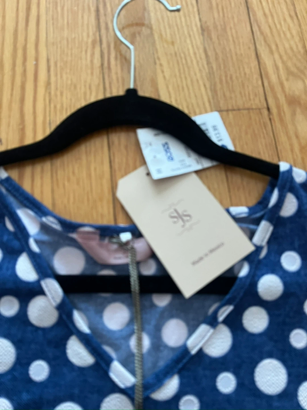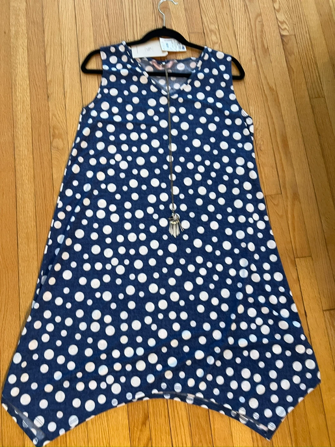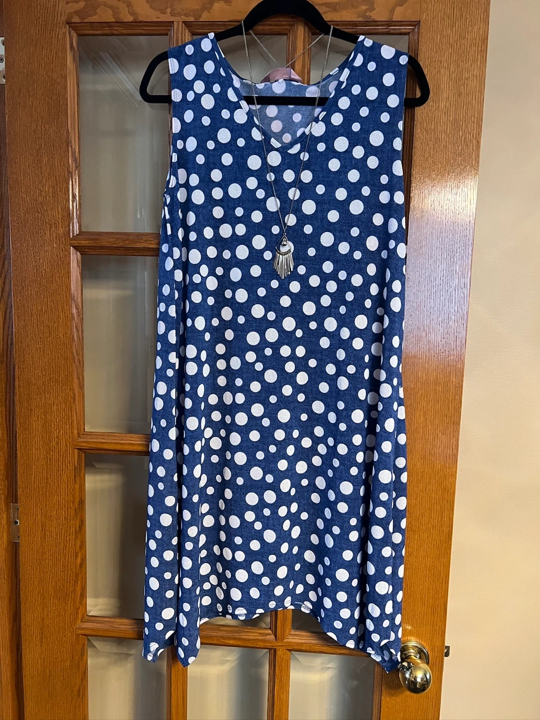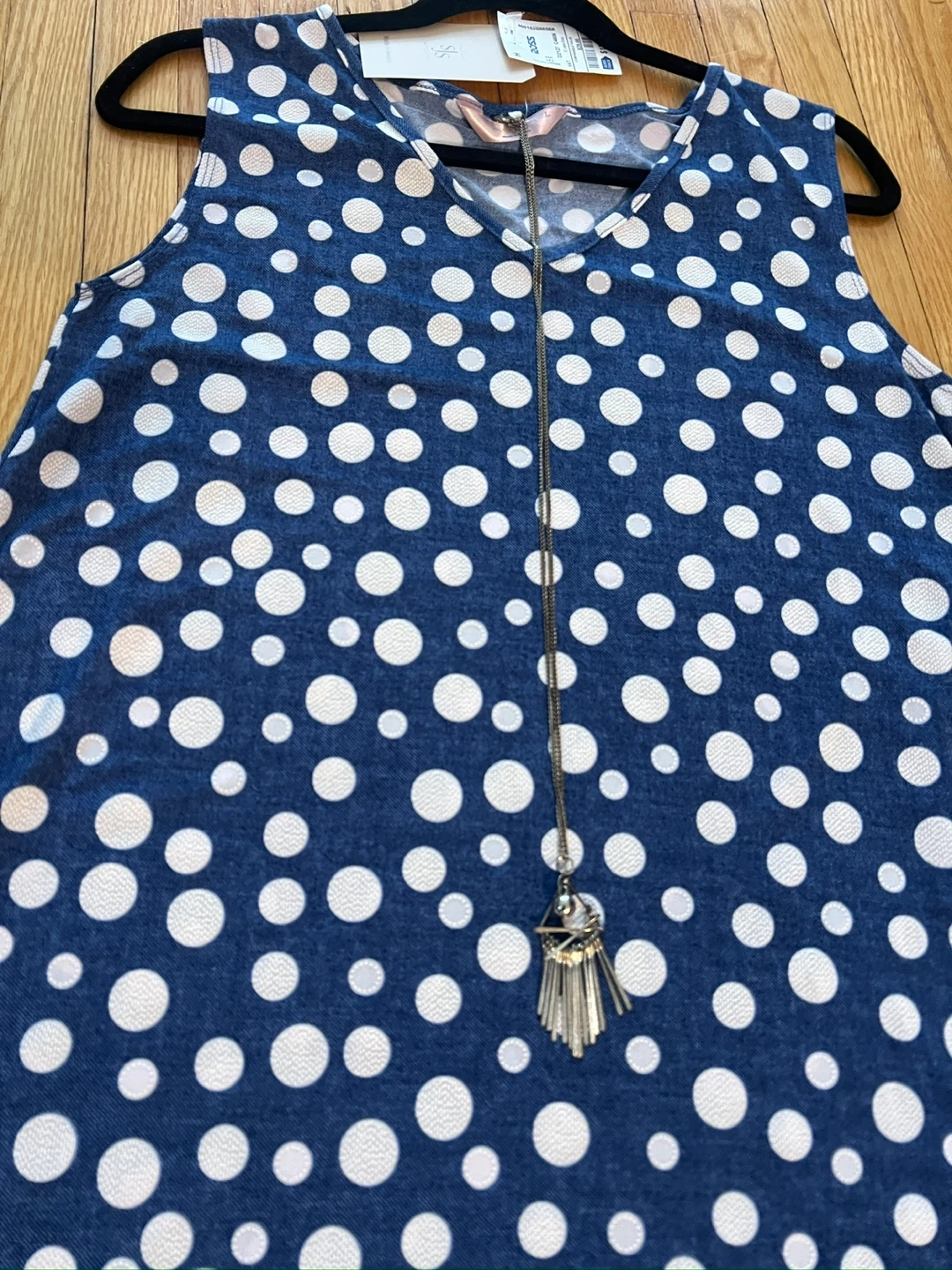 SJS Blue Polka Dot Sleeveless Dress with Necklace