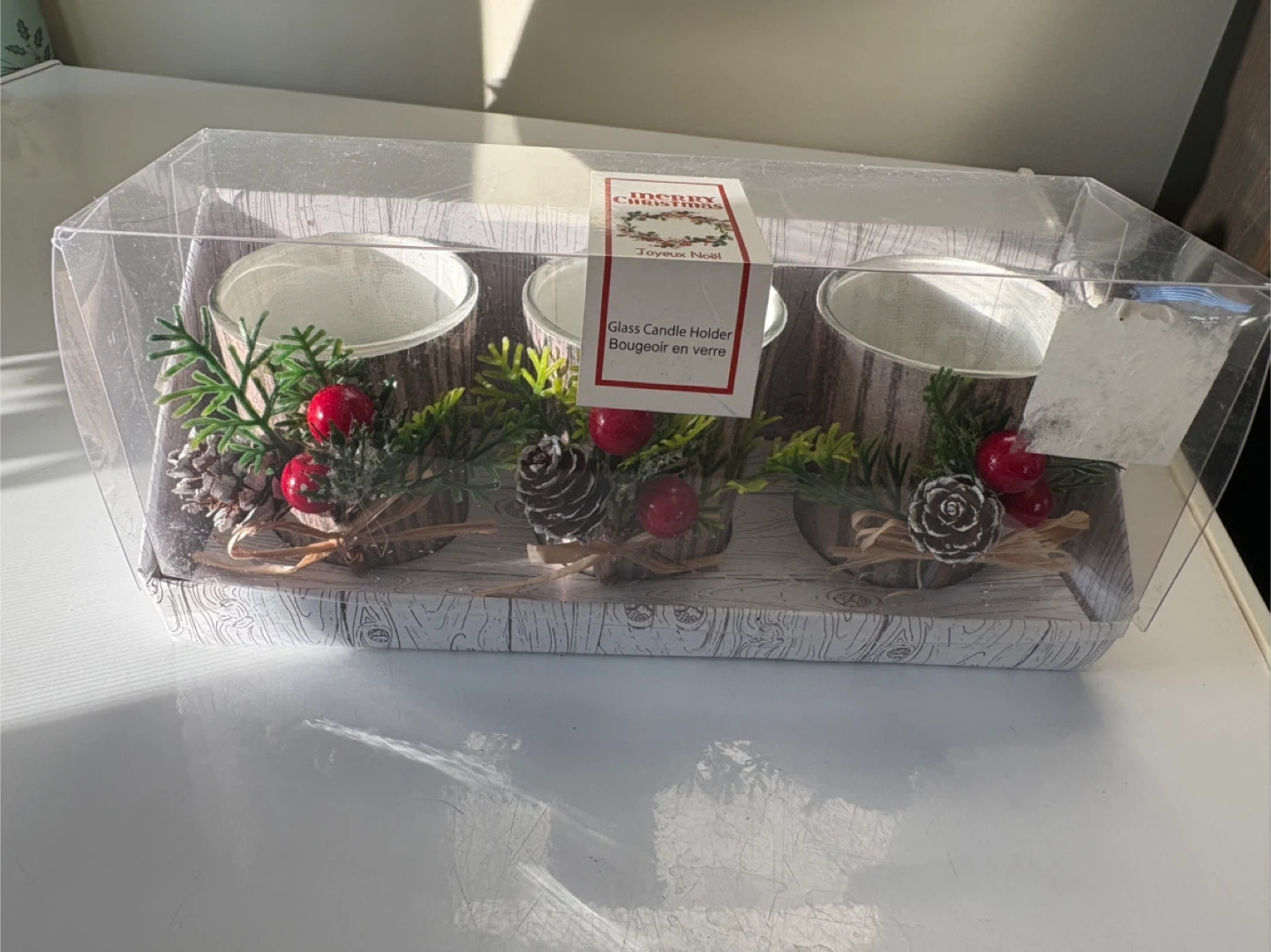 Glass Candle Holders Set (3) - Winter/Christmas Decor
