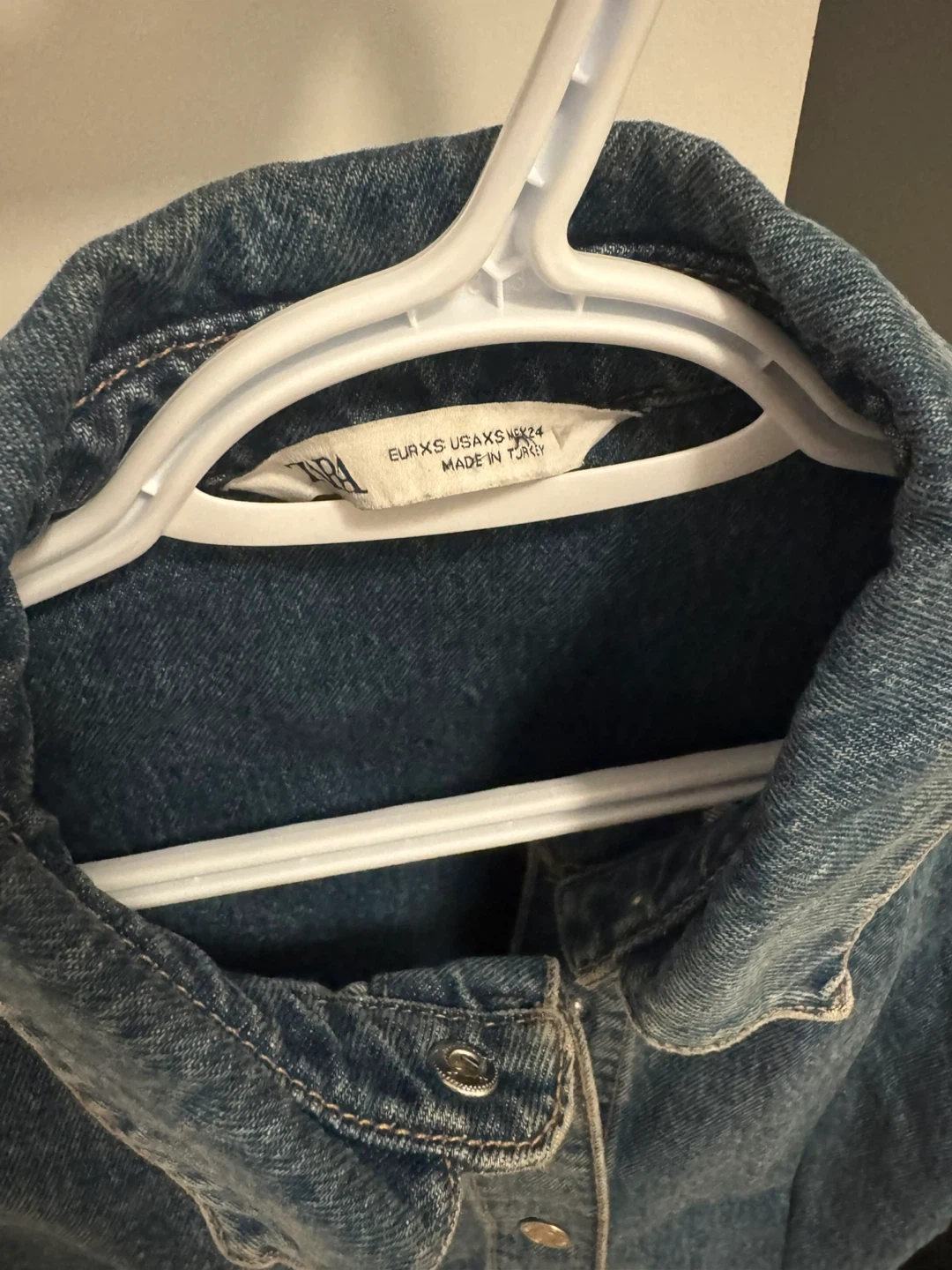 Zara long-sleeved denim shirt in a classic blue wash. Made in Turkey. Buttons up the front. Synched waist!