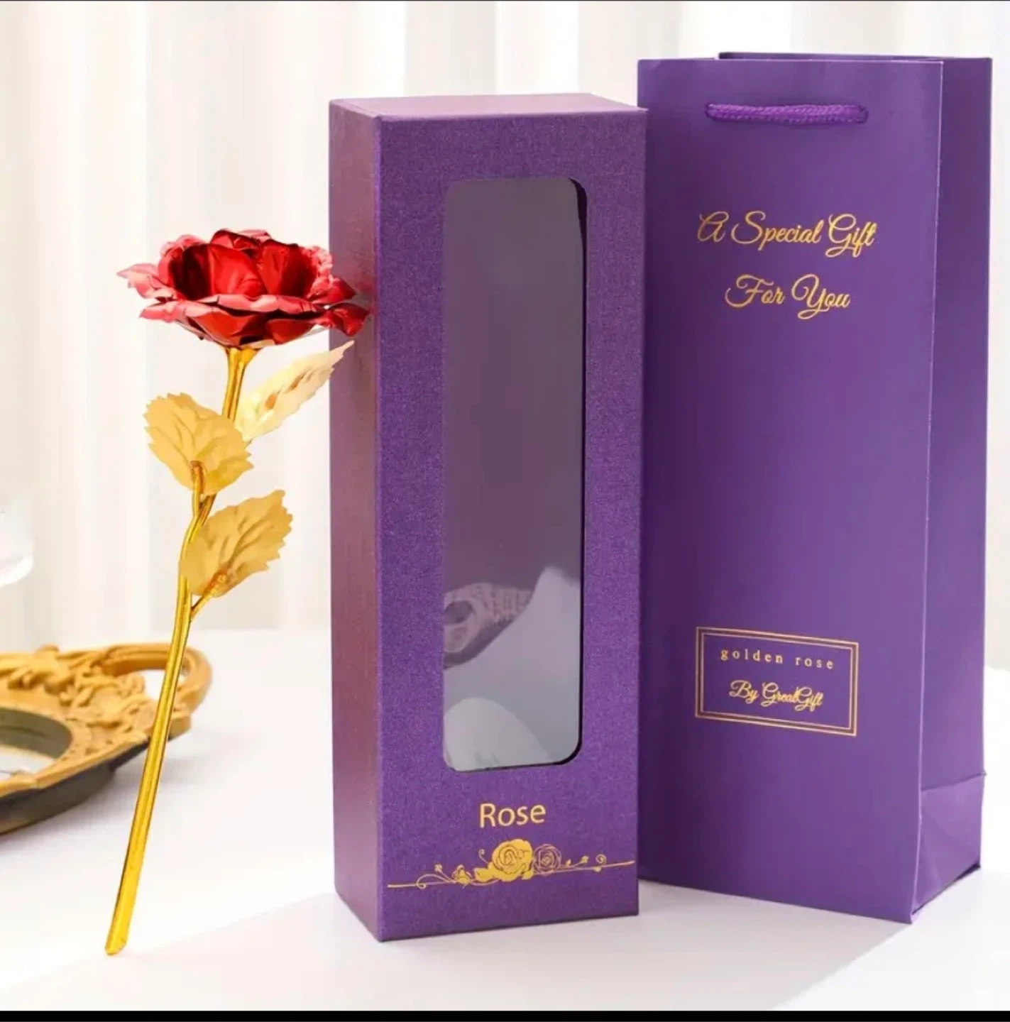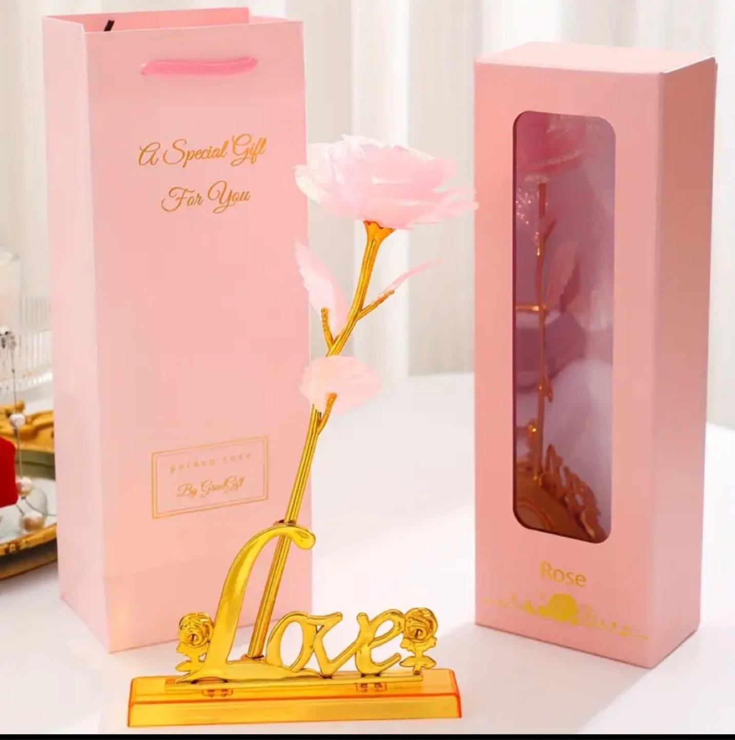 Golden Rose with "Love" Stand and Gift Box price is not $1