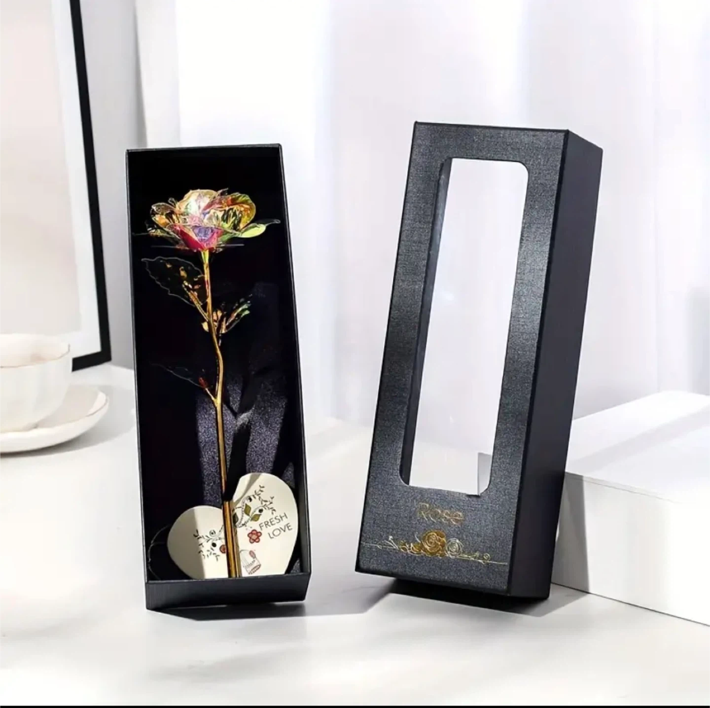 Gift Box With Single Rose, Featuring Greeting Card And Golden Foil Rose, Artificial Rose, Perfect for Valentine's Day, Handmade Gift for New Year, Present for Girlfriend, Party Favors, Bouquet