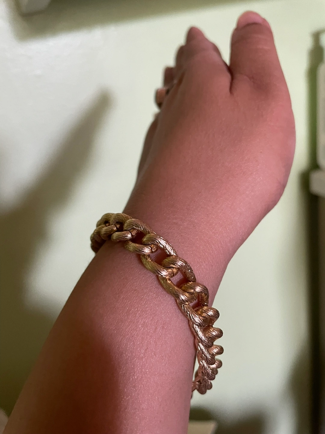 Gorgeous gold bracelet. Thick chain links. Perfect for adding a touch of glamour to any outfit. Excellent condition.
