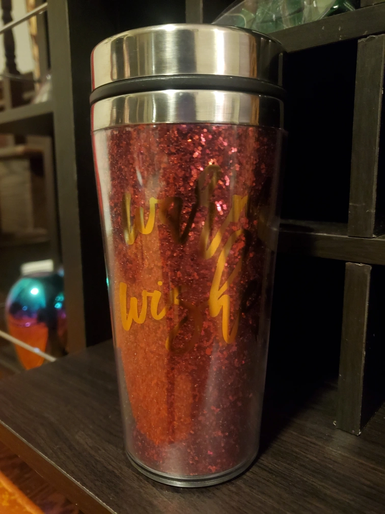 Sparkly red glitter travel tumbler. Never used.