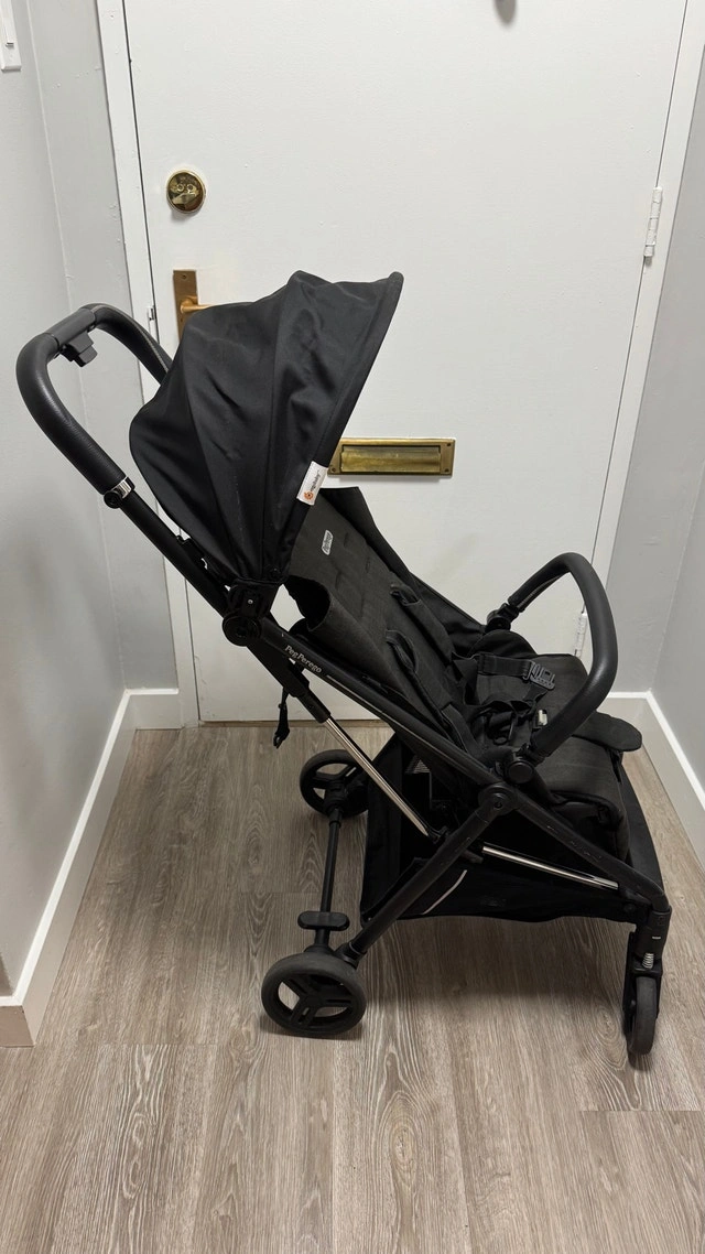 In like-new condition. The original roof canopy was damaged and replaced with a new Ergobaby canopy (UPF 50+). Because it's a different brand, there is a small gap when the seat is fully reclined. This is an easy fix for a tailor, but I haven’t had the time to manage it since we have another travel stroller. I have reduced the price to 1/3 of the original cost to reflect this. It’s a perfect lightweight travel stroller with great suspension! Clean Peg Perego Selfie stroller. Black color. Super easy to fold and lightweight. Great for travel or everyday use. Suitable up to 48 lbs. Stroller Weight: 14 lbs. Stroller Basket Weight Limit: 10 lbs. Wheels Diameter: 14 cm - 17 cm. Size of unfolded item: 51.5 W x 106.5 H x 89 D (cm). Size of folded item: 51.5 W x 62 H x 41 D (cm). Made in Italy. Folds on its own, automatically and compactly. One-handed backrest recline with a near-flat position. Easy drive system featuring ball bearing wheels with suspension. The eco-leather handlebar can be steered with just one hand! Solid, lightweight aluminum frame. Includes a convenient carry-all basket. Large UPF 50+ hood canopy with zip fastening. Featured an adjustable 5-point harness. Large, ultra-comfortable seat. When folded, the stroller can be used as a carry handle. Removable open-close front bar in eco-leather. Make it a Travel System with the adapter [sold separately] for any Peg Perego car seat.