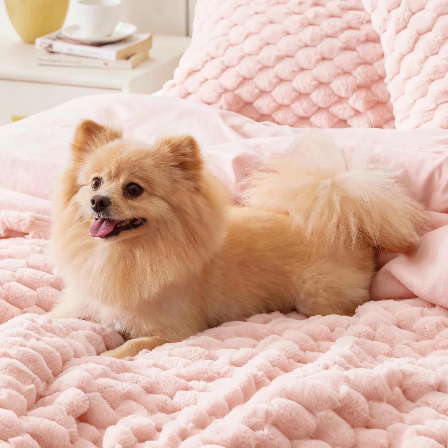 Pink 3D Jacquard Fuzzy Flannel Comforter Set
