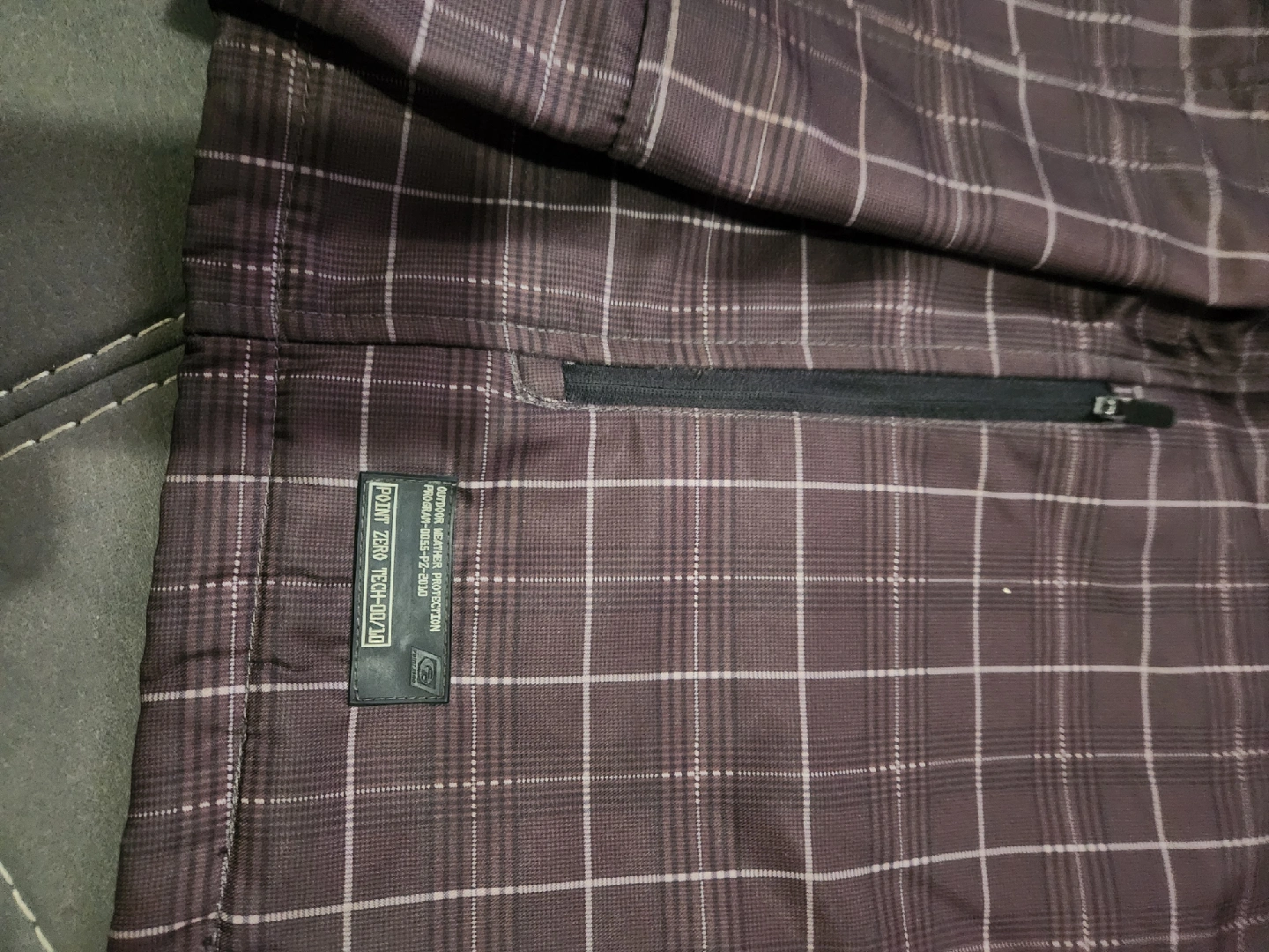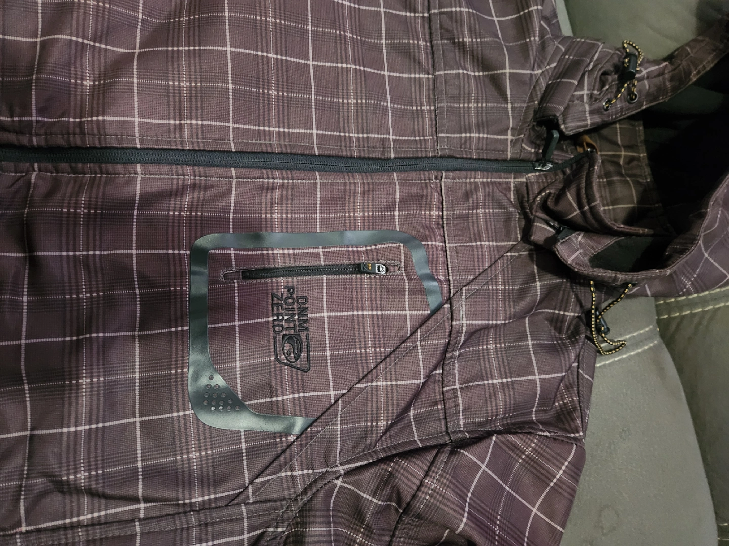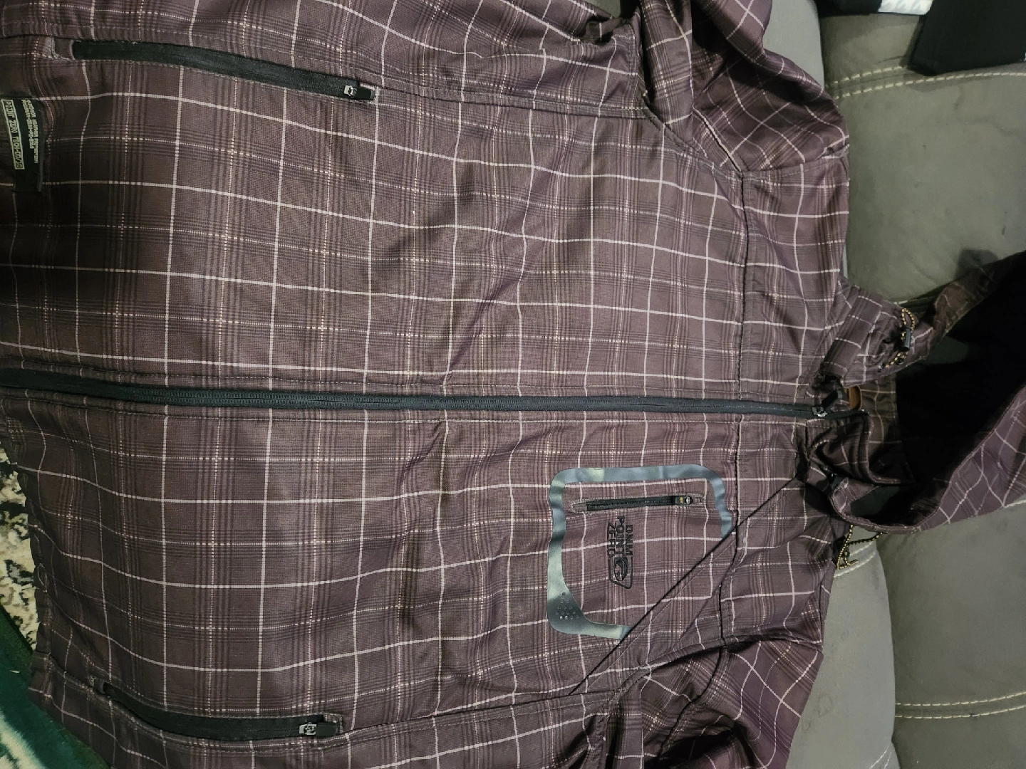 18Here's a Point Zero jacket with a cool plaid pattern! It's brown with a hood, perfect for those in-between weather days. Has a zip pocket on the front too!