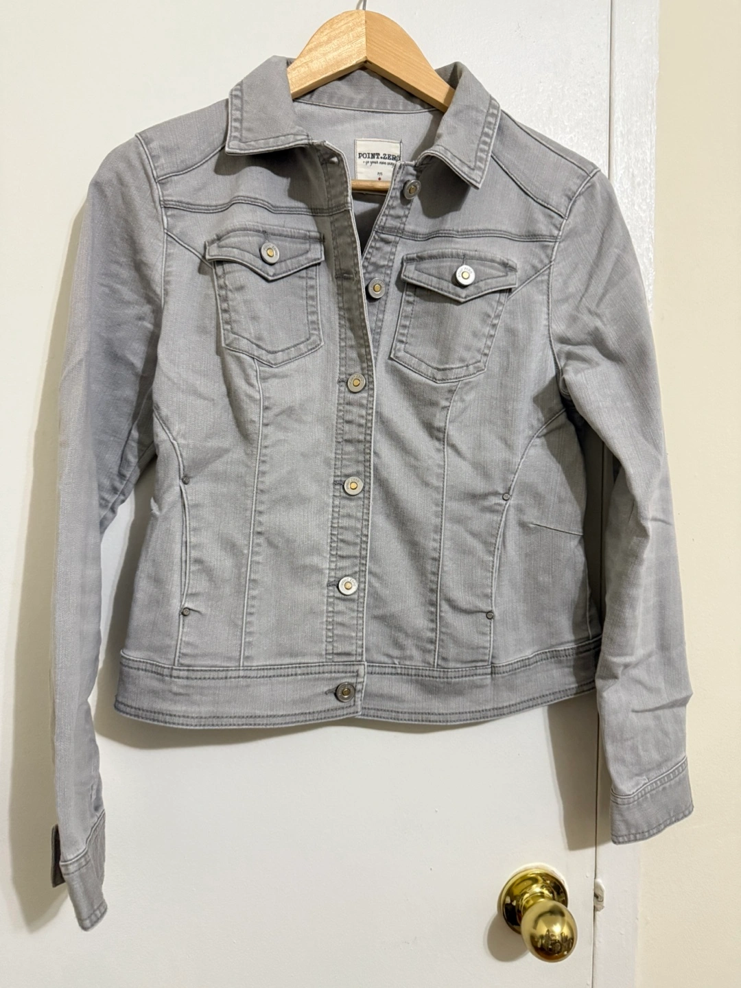 62Selling a Point Zero denim jacket in gray! It's a size small and in great condition. Perfect for layering or wearing on its own