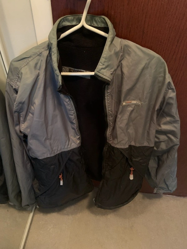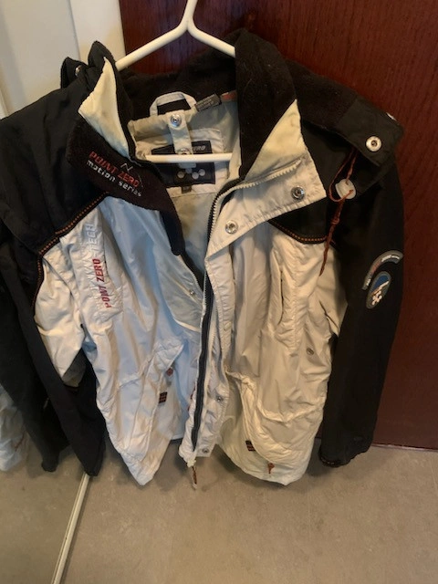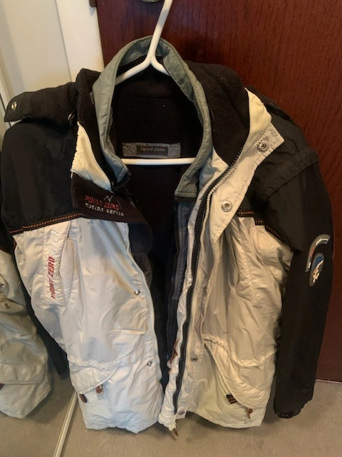 71Mens point zero jacket. Size - Small. Colour - White/Grey. Inside jacket is warm, outershell is great for wind and rain. Put them together and stay warm and dry, or wear them separately depending on the weather. Includes detachable hood. Lots of pockets inside and out. Asking $50 or make me an offer.