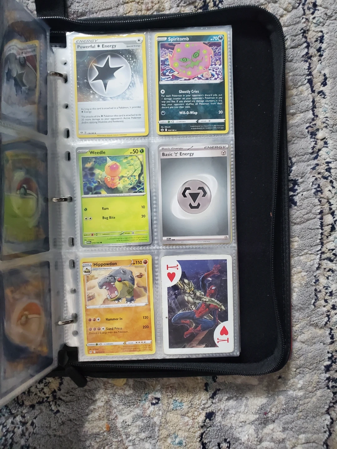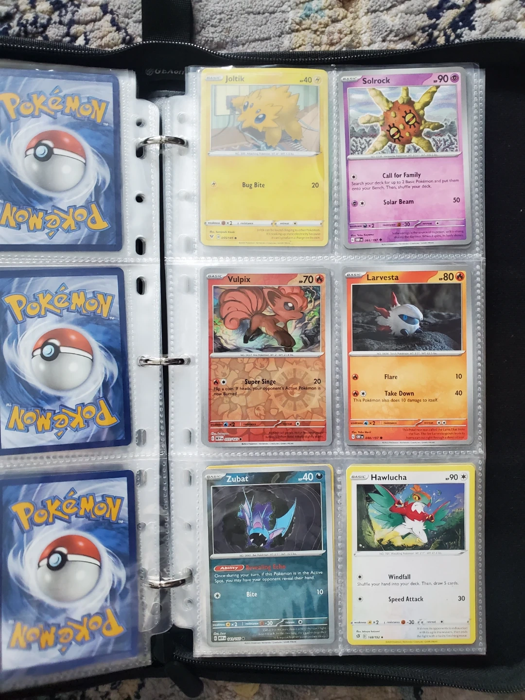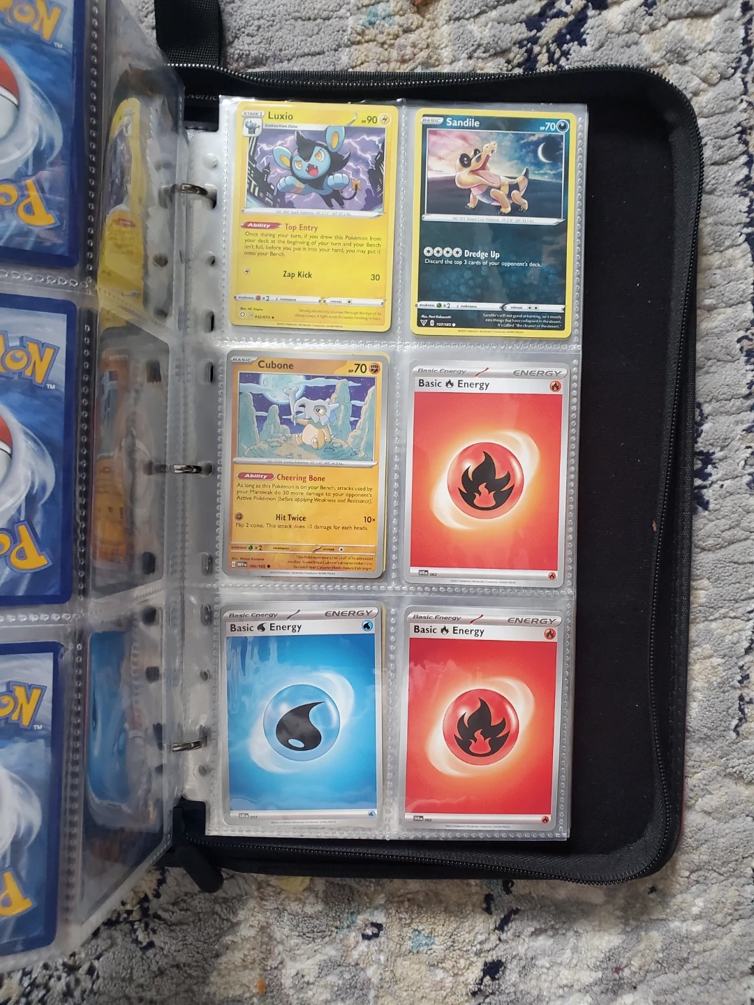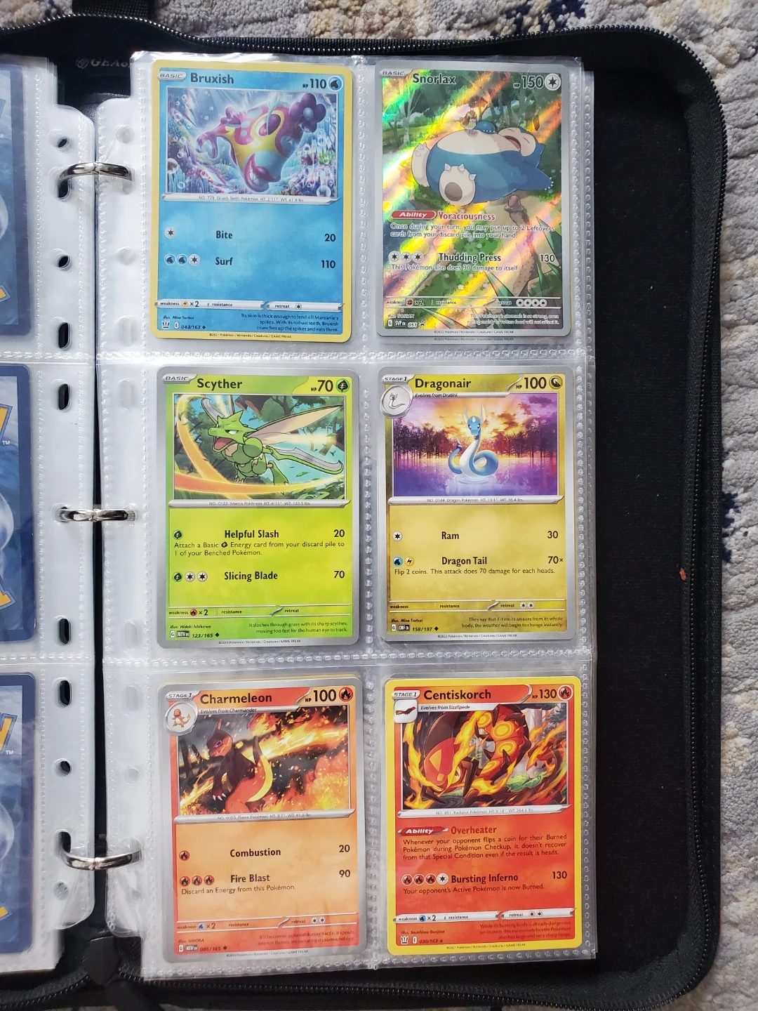 105Selling my Pokémon card binder with 200+ cards in great condition. Includes a mix of holo, rare, uncommon, and common cards from different sets. Some featured Pokémon: Snorlax, Charmeleon, Dragonair, Scyther, and more! All cards are sleeved and stored safely in a zippered binder. Perfect for collectors or anyone starting a collection. Price: $115 (or best offer) Pickup in: Oshawa