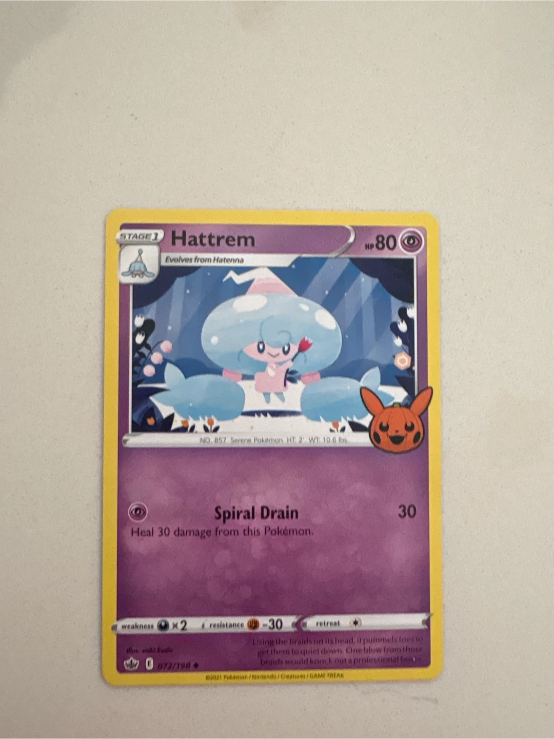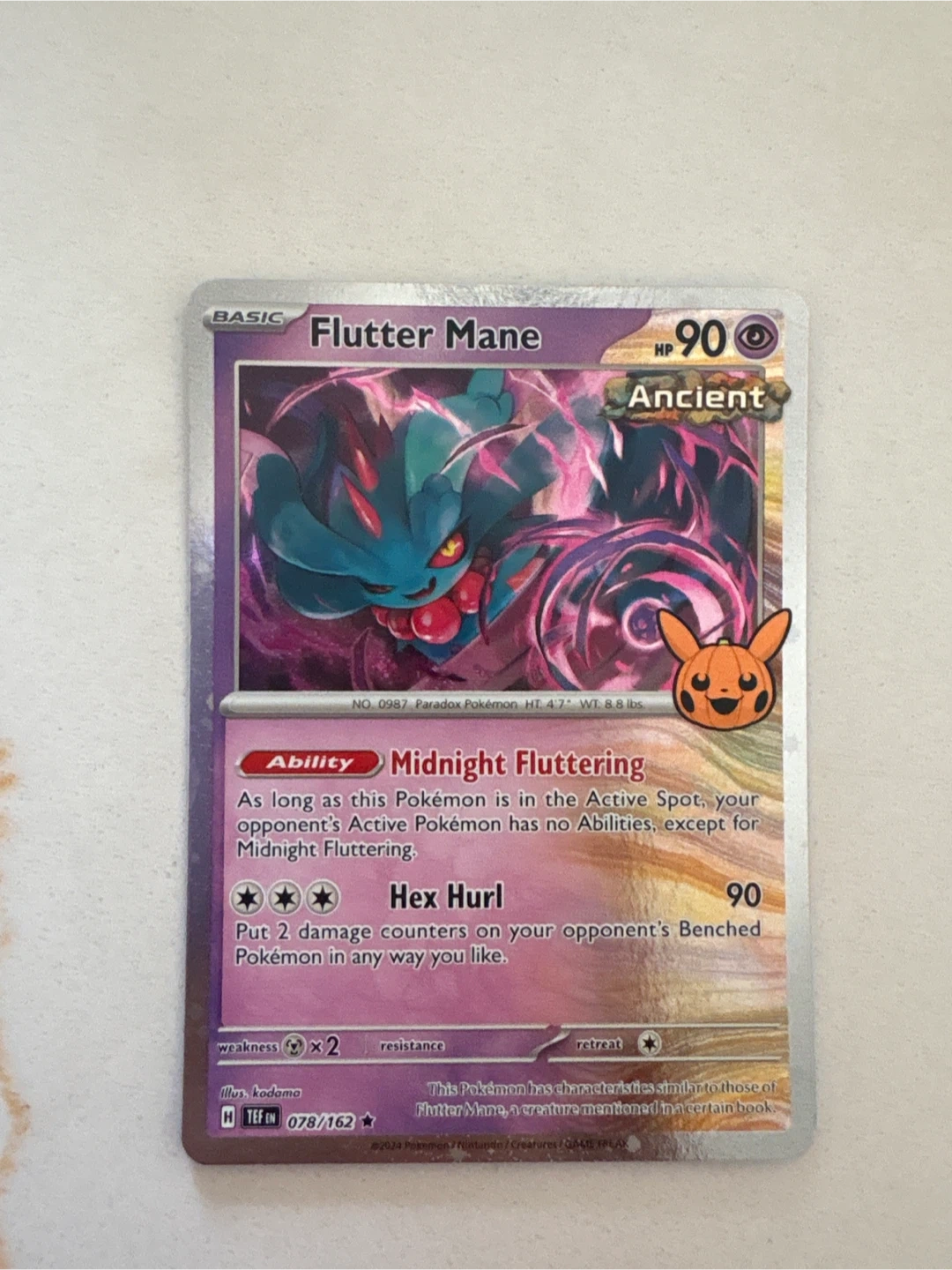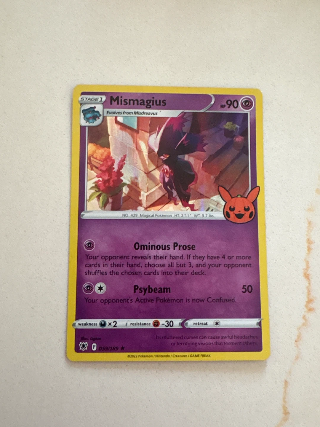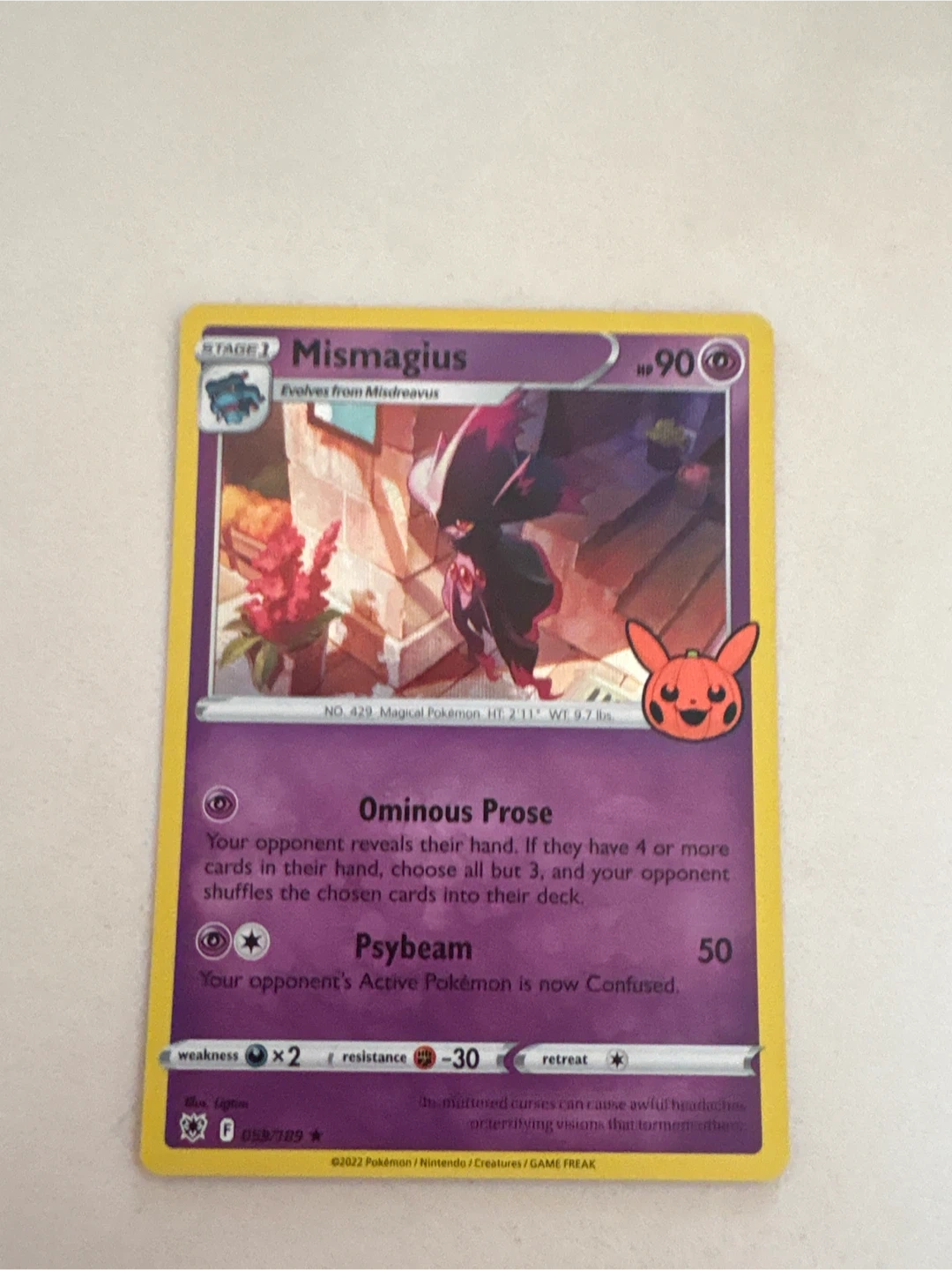 Pokemon trading cards. Includes Duskull, Mismagius, Flutter Mane, and Hattrem cards. All cards are in great condition! Prices: All is 50$ One is 1.50$ 2 for 2$ 10 cards your own choice for 15$