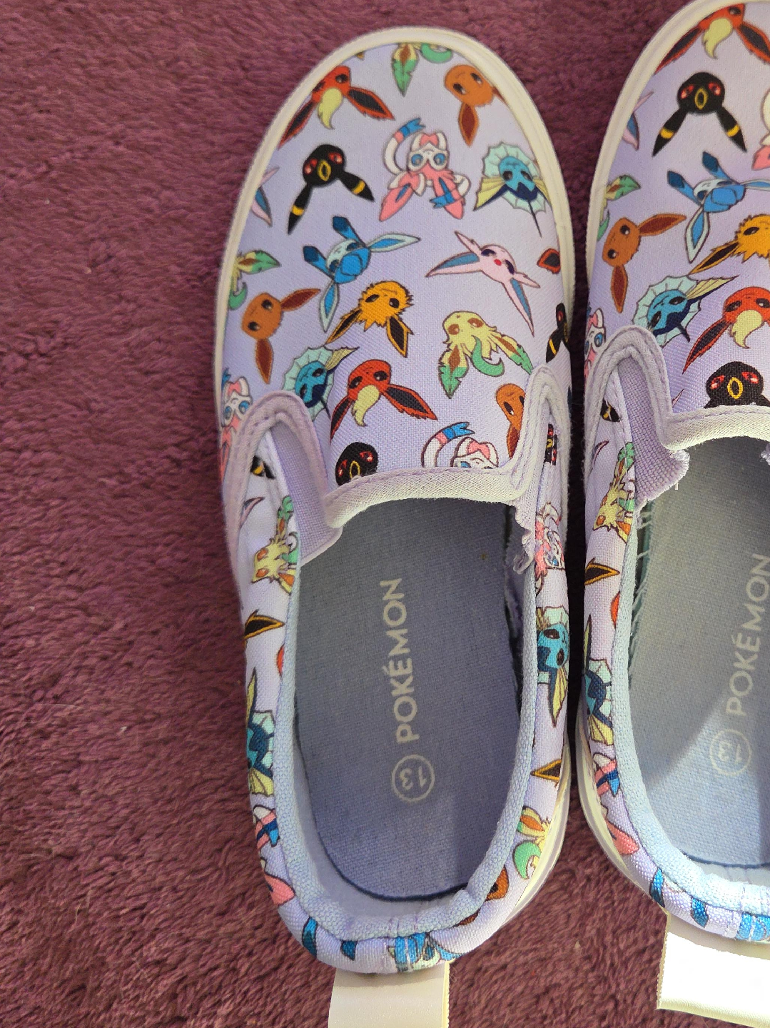 5Selling a pair of Pokémon slip-on shoes in a size 13! Never worn. They feature various Pokémon characters on a light purple background, so they're super cute for any Pokémon fan