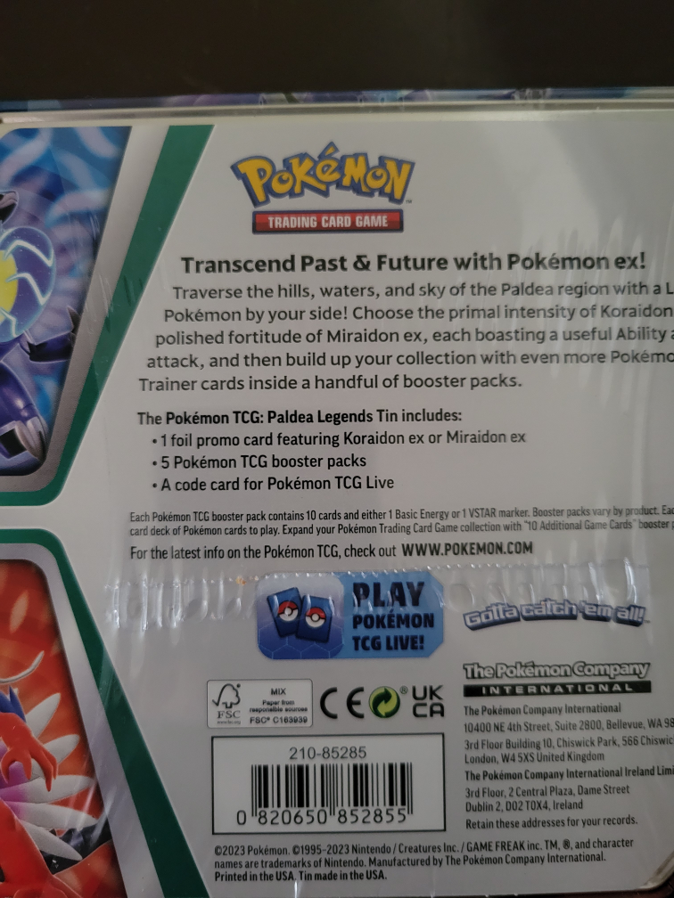 47Paldea Legends tin with 5 booster packs Brand new, unopened