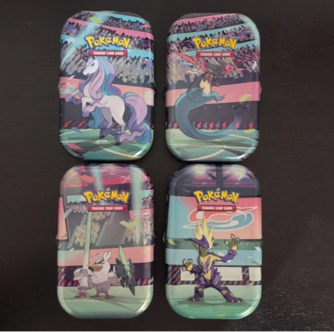 694Selling four Pokémon Trading Card Game tins. Each tin features a different Pokémon character. Great for storing your cards or as a collectible! tins only no cards