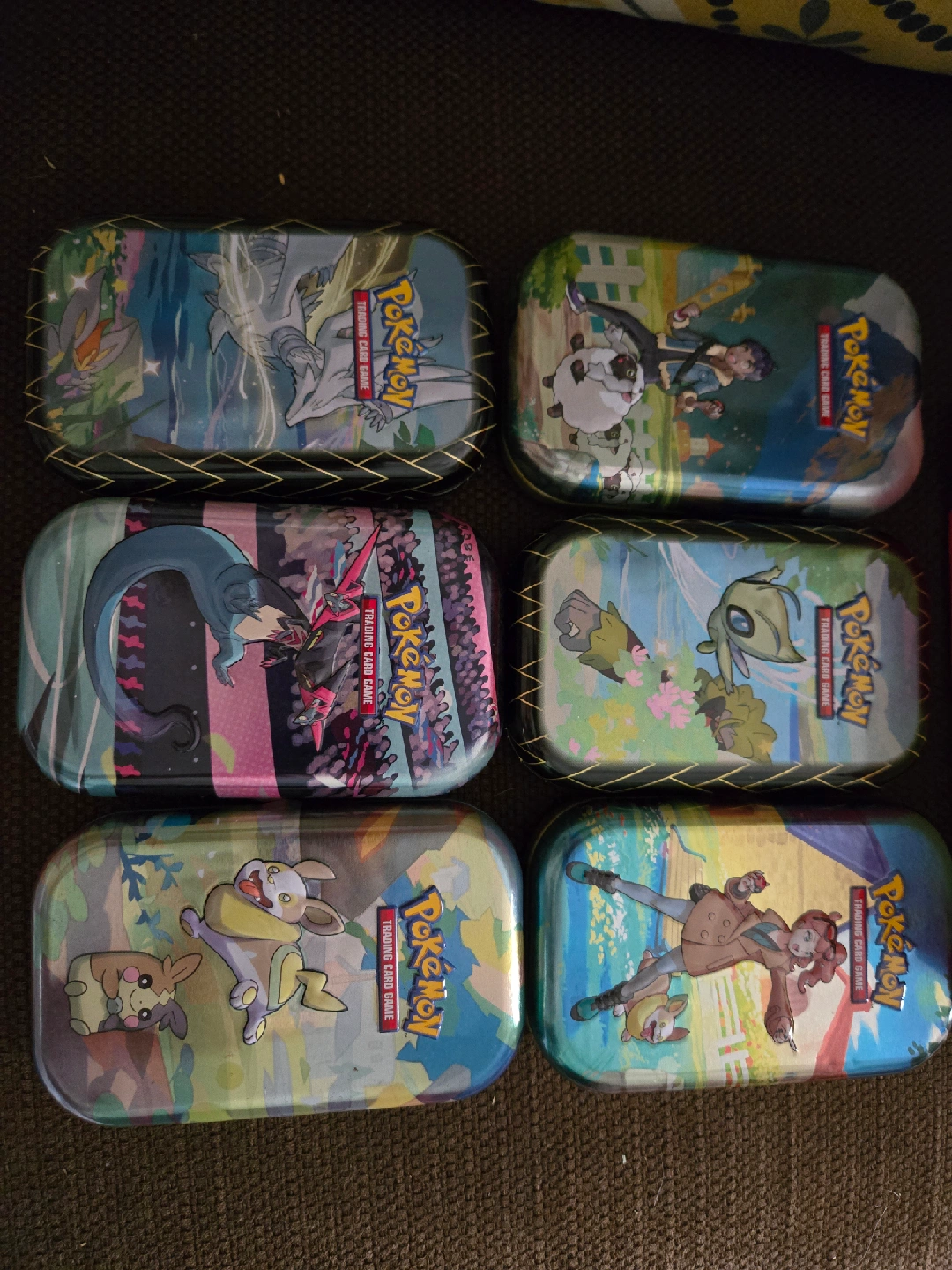 Selling a set of Pokémon Trading Card Game tins. They feature various Pokémon characters and designs on the outside. Great for storing your cards or other small items! TINS ONLY! All 6 with ETB for Card storage!