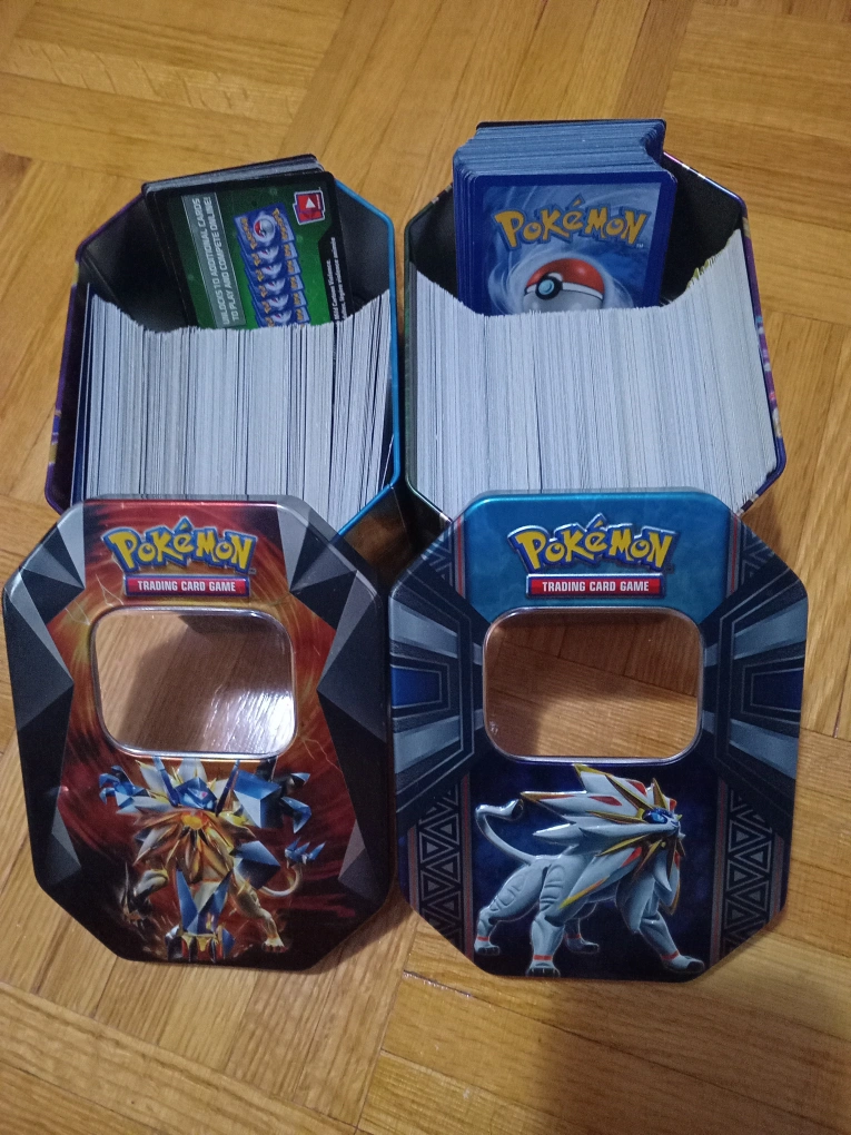 Selling two Pokémon Trading Card Game tins filled with cards! Each tin features a different legendary Pokémon. Perfect for any Pokémon card collector or player looking to expand their collection