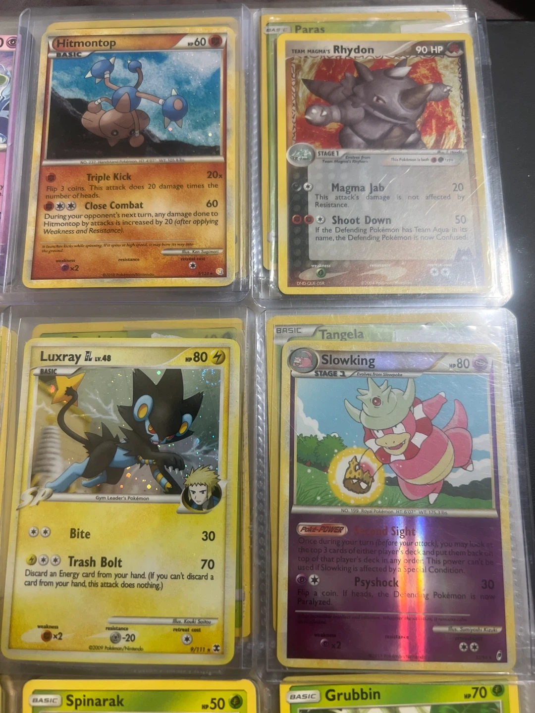 10Selling a set of Pokémon trading cards including Hitmontop, Team Magma's Rhydon, Luxray, and Slowking! These cards are in great condition and would be a fantastic addition to any collection