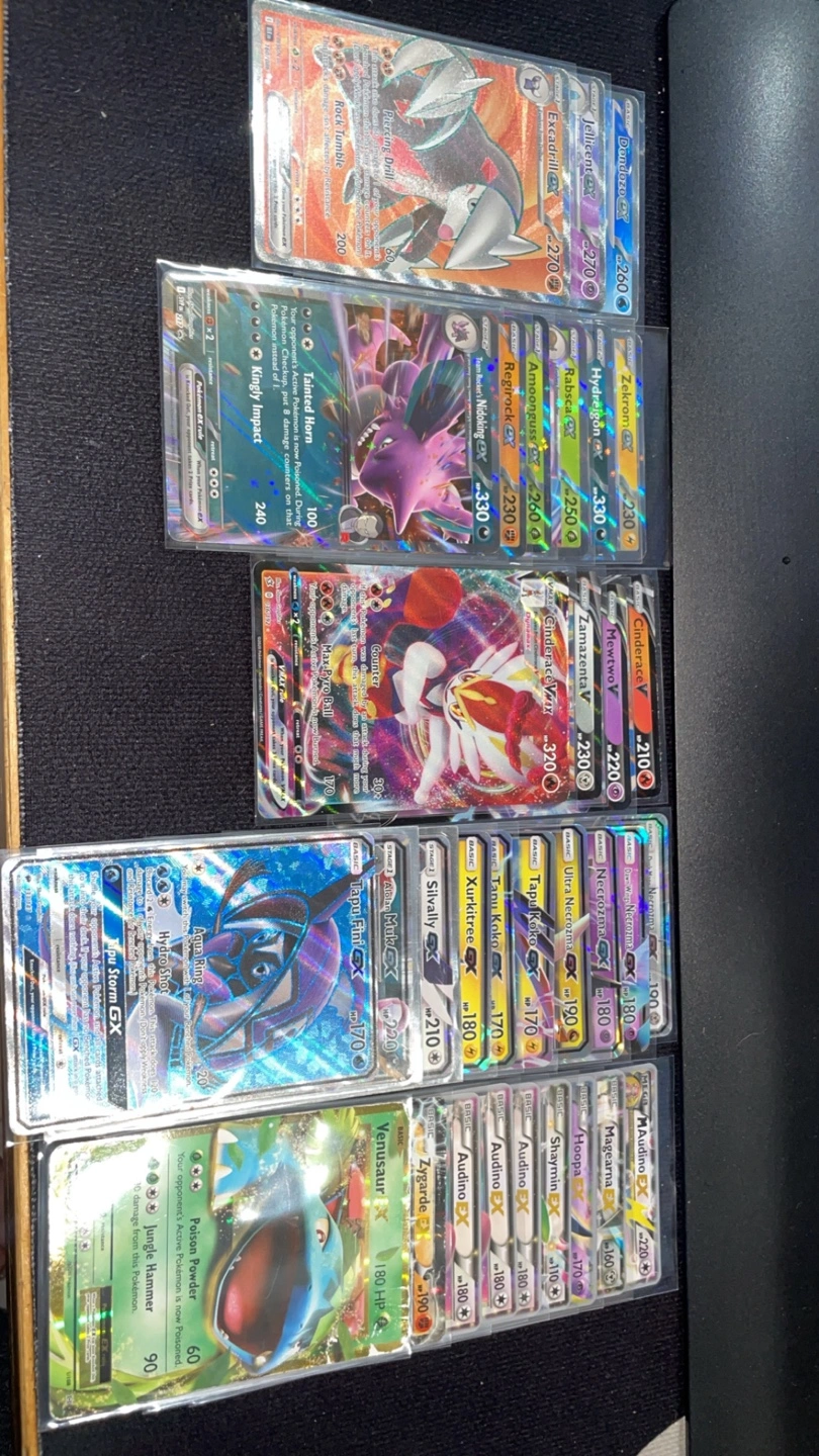 Selling a mixed lot of Pokémon cards, including EX and V cards! All cards are in sleeves to keep them safe and in great shape. Perfect for collectors or players looking to expand their collection!