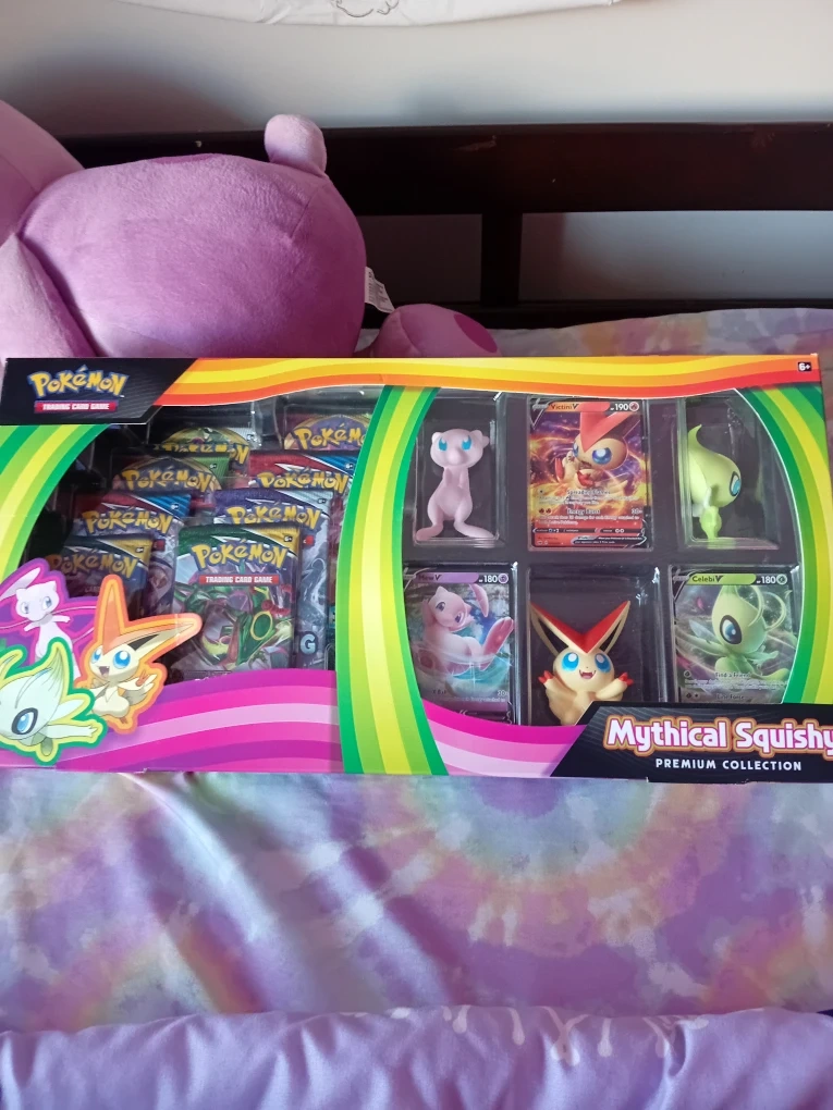 15Selling a Pokemon Mythical Squishy Premium Collection! It includes Pokemon trading cards and squishy figures of Mew, Victini, and Celebi. Suitable for ages 6+