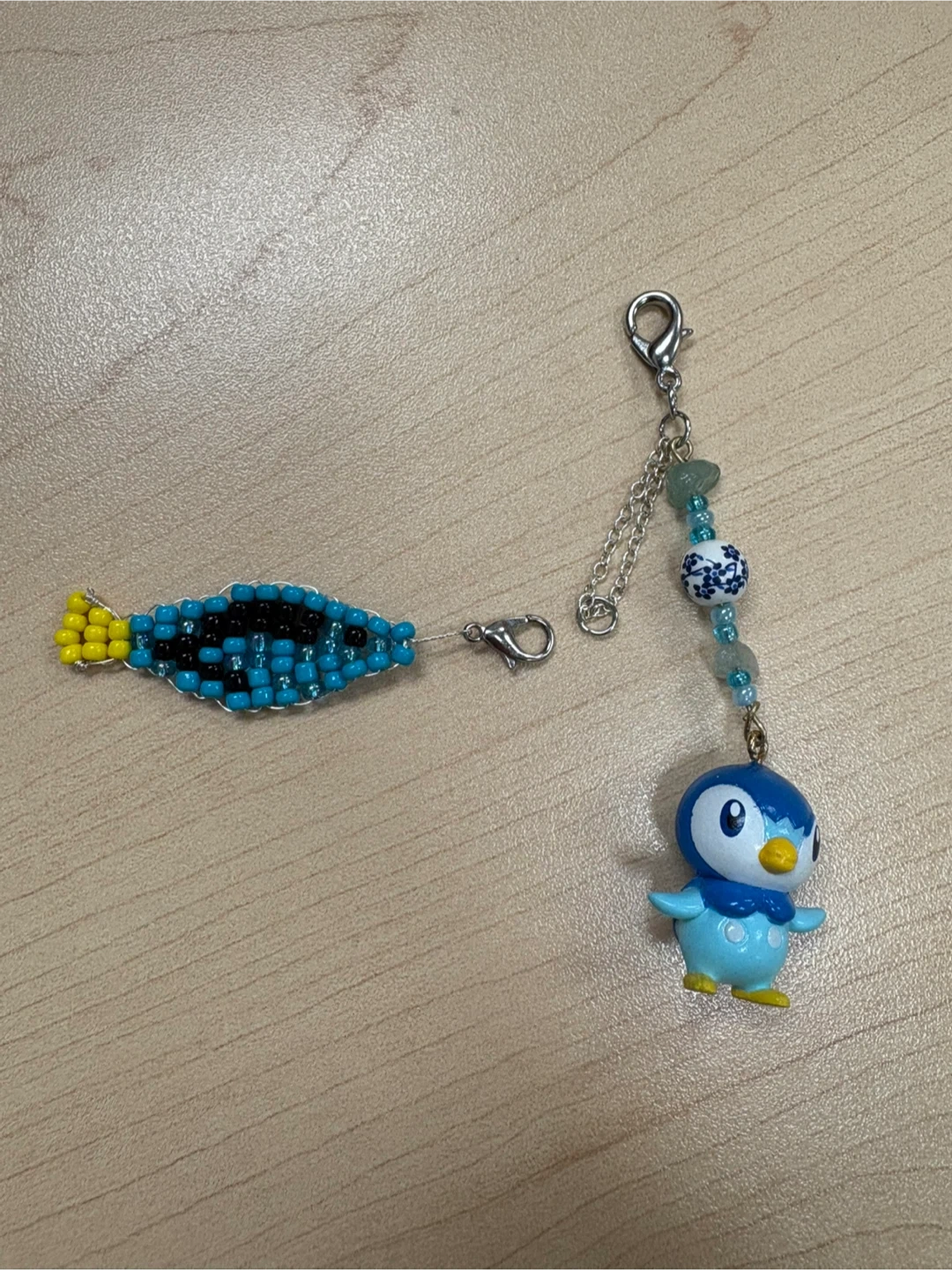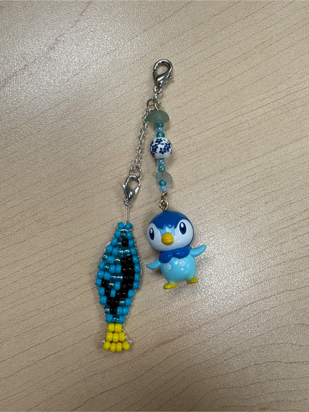 26POKEMON 🤩 🐧 PIPLUP 💙 ✨handmade/custom keychain purse pal bag charms by me! *Detachable custom beaded fish charm (by me!) Super cute! Attach to any zipper, straps, keychains, etc