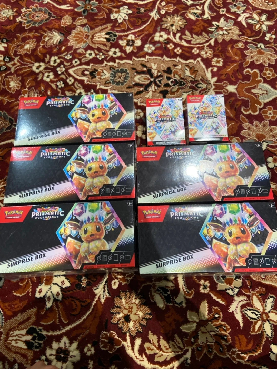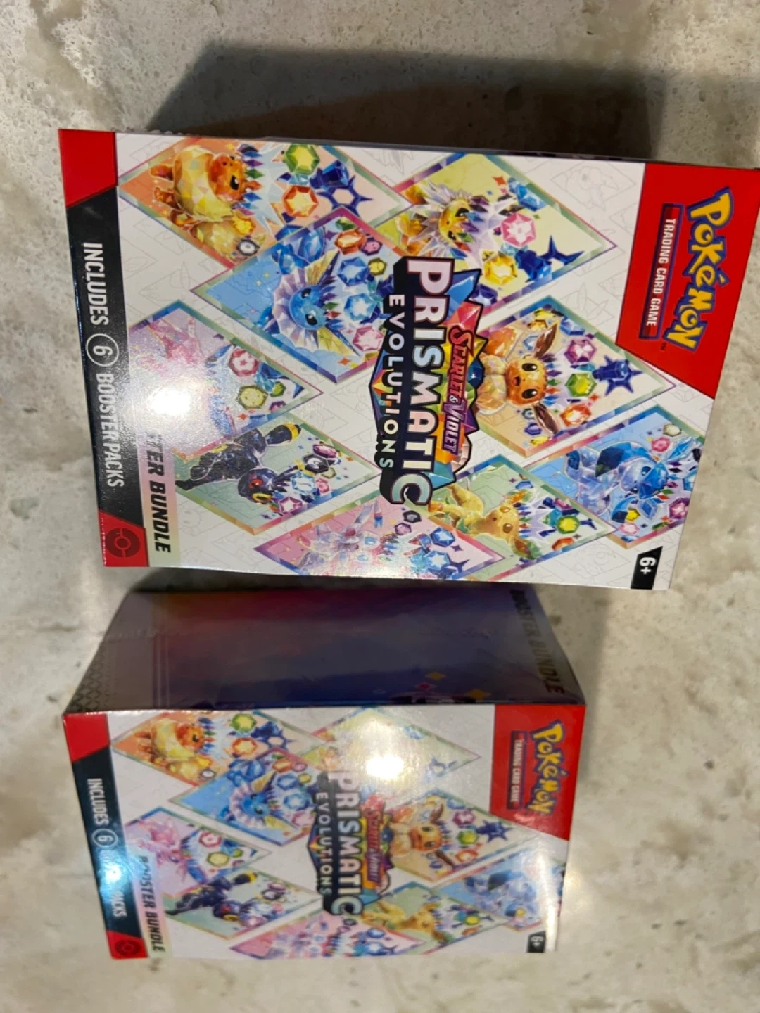 68Selling sealed Pokemon TCG Scarlet & Violet Prismatic Evolutions Booster Bundles! Each bundle includes 6 booster packs. Perfect for any Pokemon collector or player! Or Trade for SSP!!!! PRISMATIC BUNDLE BOOSTER | $85 PRISMATIC SURPRISE BOX | $80