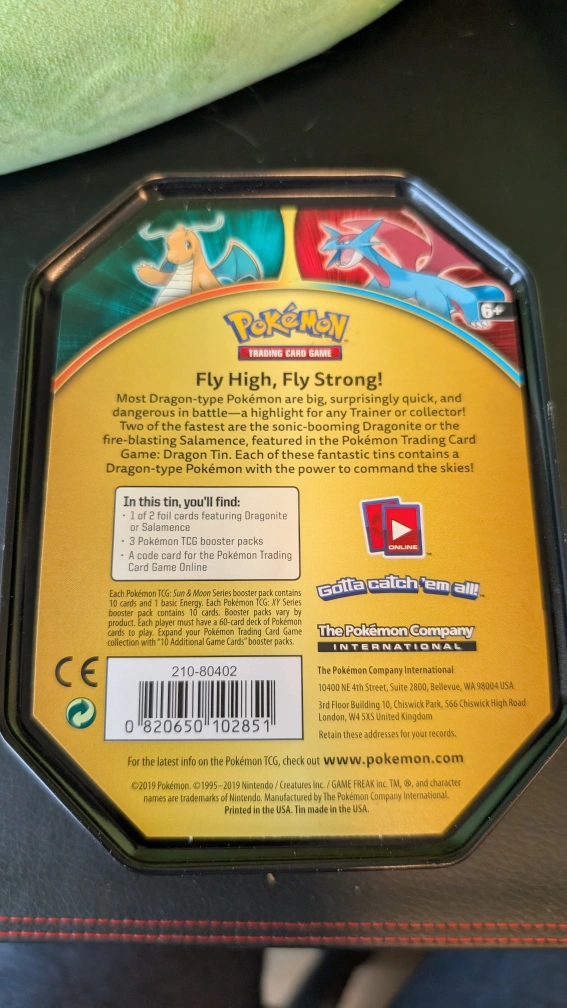 Selling a Pokemon Trading Card Game tin! It features Dragonite and Salamence. cash only pick up