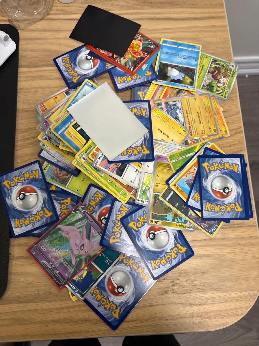 20Selling a mixed lot of Pokemon trading cards! Great for collectors or anyone looking to expand their collection. Cards are in used condition with some wear and tear, so please review pictures carefully. There are a variety of different Pokemon, including Espeon V, Flapple, and Shiftry!