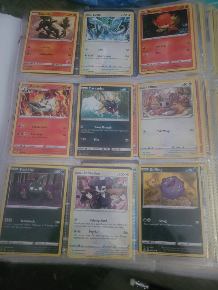 Selling a collection of Pokemon trading cards! Includes Salandit, Lugia, Pansear, Volcarona, Carvanha, Minccino, Trubbish, Indeedee, and Koffing! All cards are in great condition and ready for a new home! 251