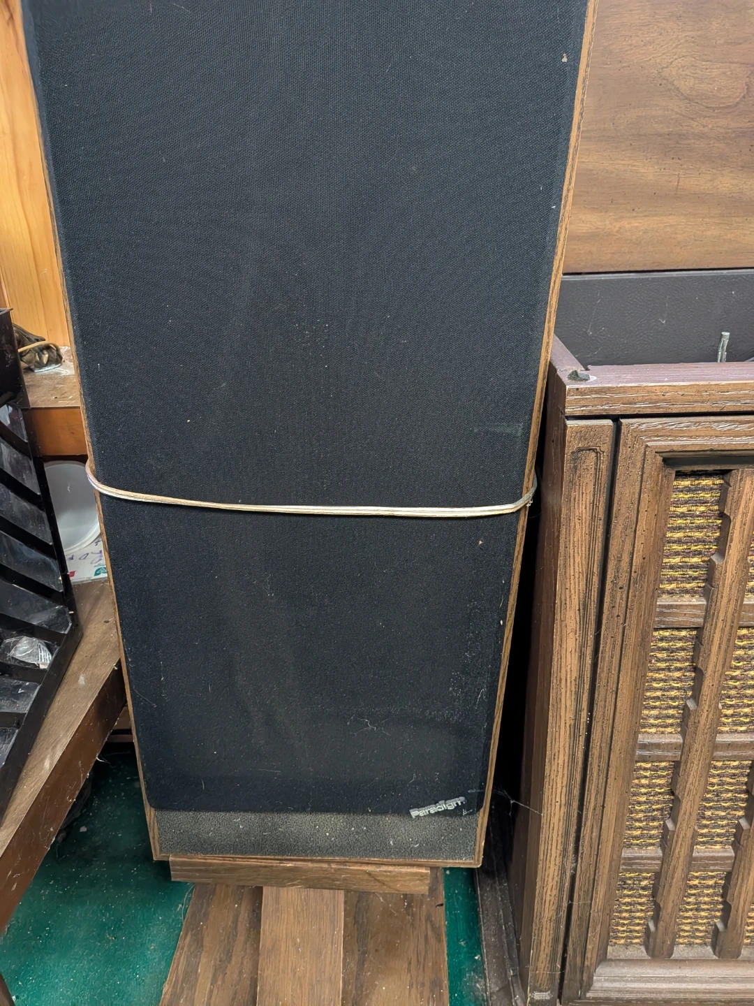 This is a vintage Philips console record player and radio. It comes with two tower speakers. The unit includes a turntable and AM/FM radio tuner and 8 track. It's a great piece for retro audio enthusiasts!